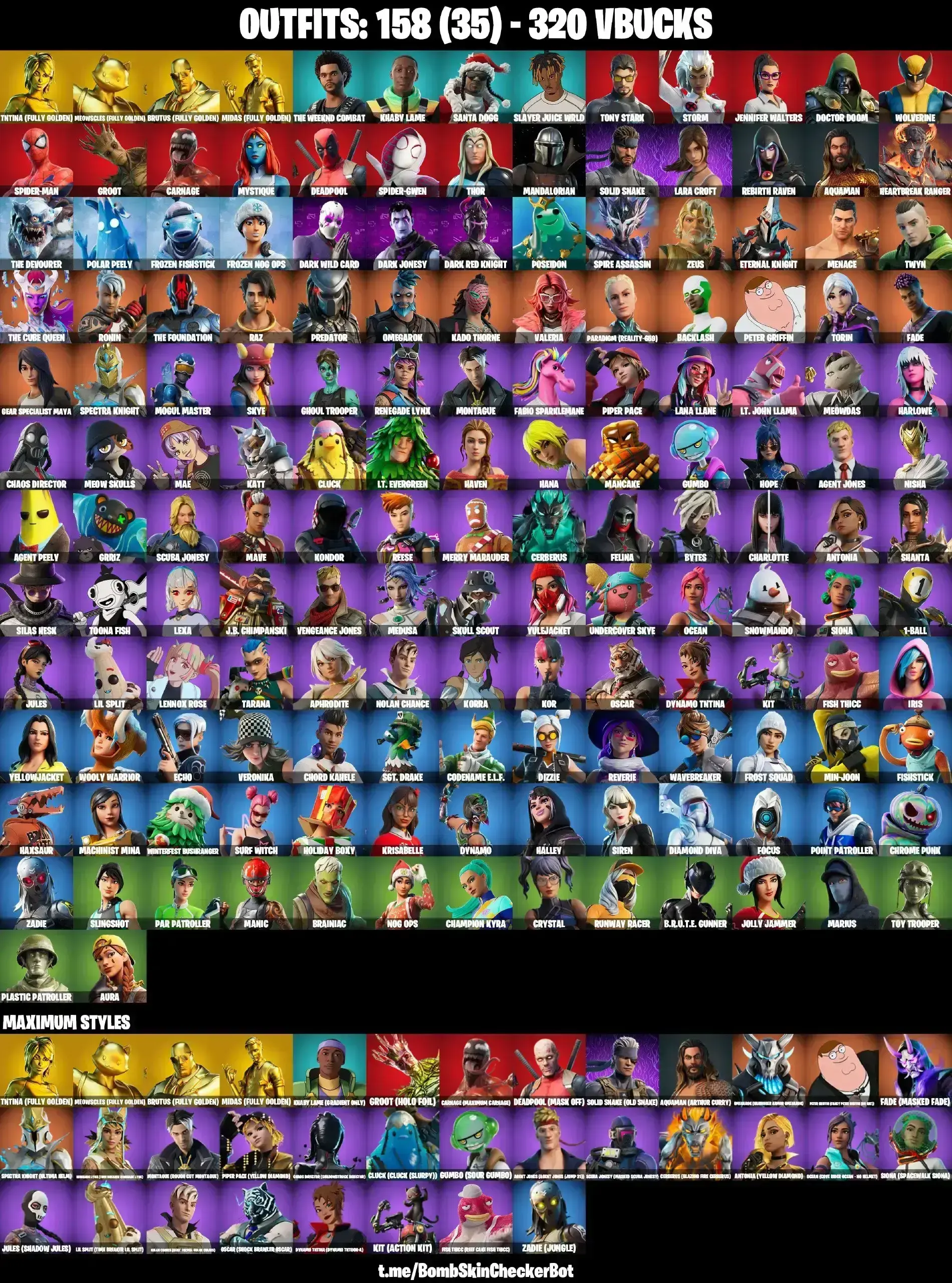158 SKINS | LEVIATHAN AXE | HOLO FOIL GROOT | JABBA SWITCHWAY | BACKLASH | GHOUL TROOPER | MACHINIST MINA | LARA CROFT | MANDALORIAN | SPIDER-MAN | BRAINIAC | TOY TROOPER | PLASTIC PATROLLER | CANDY AXE | STAR WAND | PREDATOR | MA