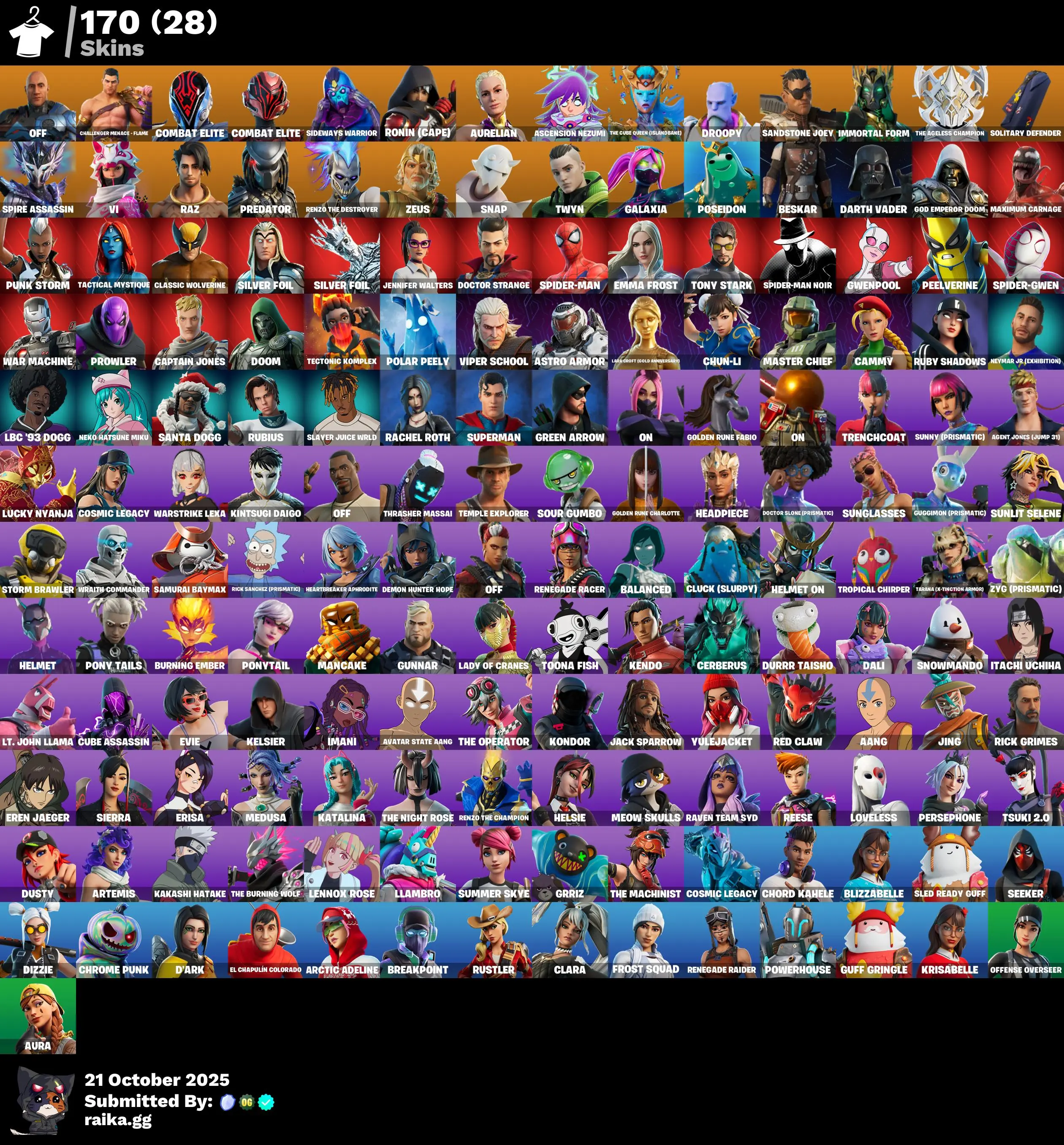 170 TOP SKINS RENEGADE RAIDER❤️JENNIFER WALTERS❤️TONY STARK❤️SPIDER-MAN❤️GALAXIA❤️RUBY SHADOWS❤️TSUKI 2.0❤️PLASMA CARROT❤️LAUGH IT UP