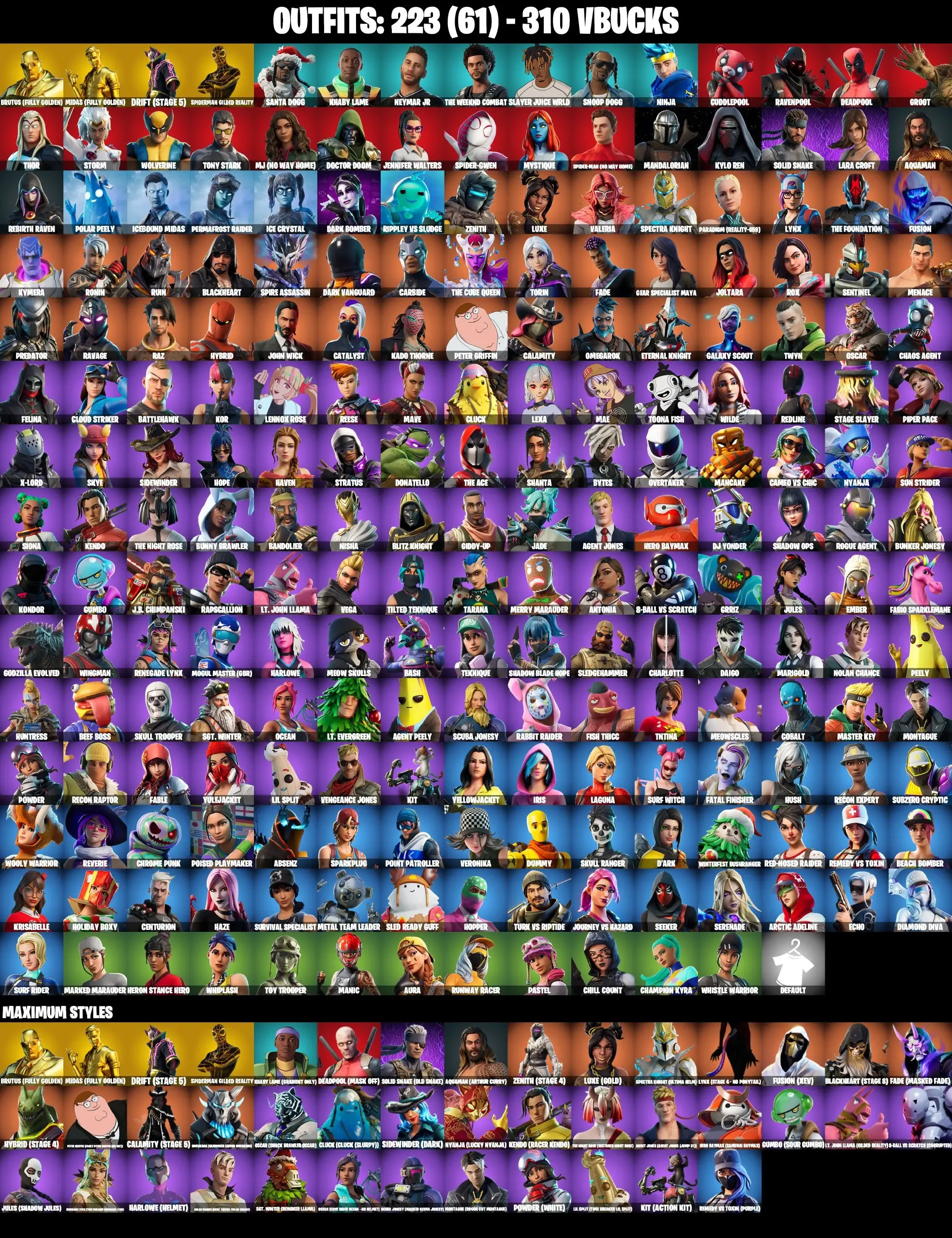 223 SKINS | JOLTARA | SKULL TROOPER | LARA CROFT | MANDALORIAN | RAVENPOOL | CUDDLEPOOL | JABBA SWITCHWAY | GILDED SPIDER-MAN | SPIDER-MAN NO WAY HOME | MJ | SPIDER-GWEN | WHIPLASH | TOY TROOPER | GOLDEN MIDAS | ORANGE JUSTICE | R