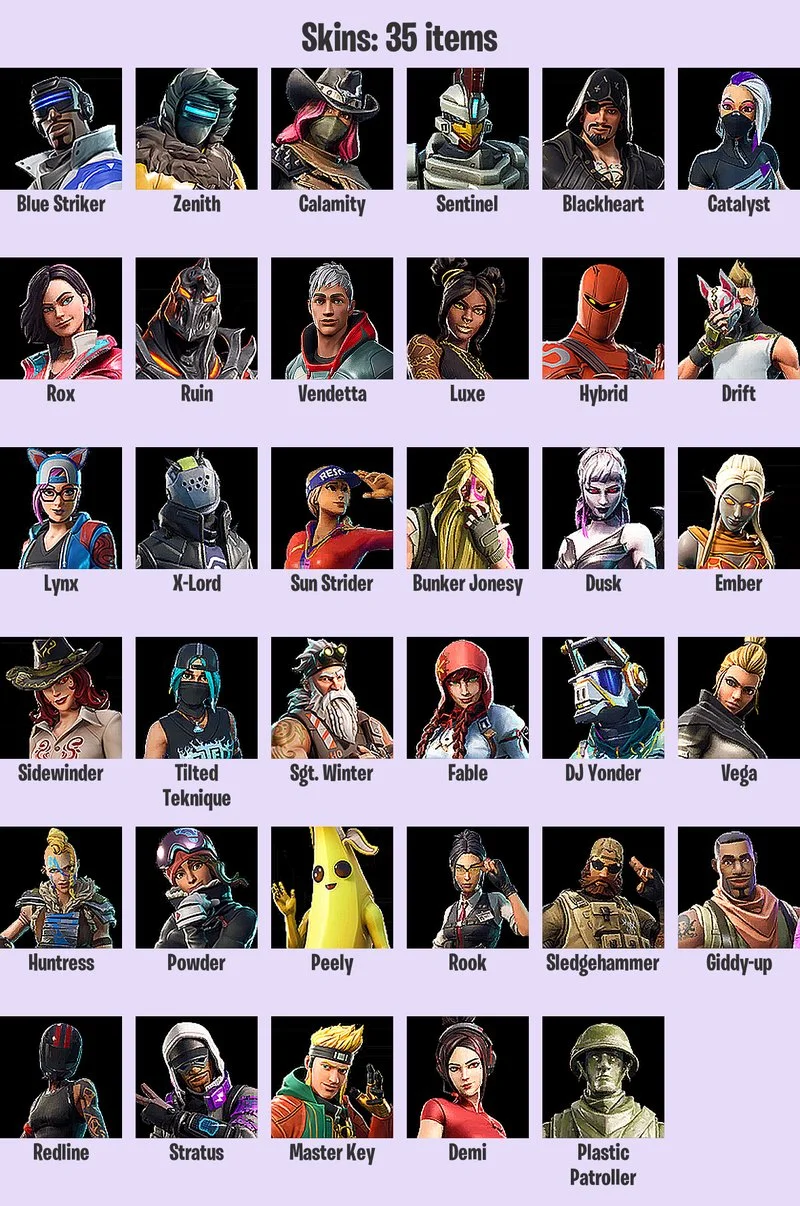 35 Skins|Blue Striker|Zenith|Calamity|Sentinel|Blackheart|Catalyst|Rox|Ruin|Vendetta|Luxe|Hybrid|Drift|Lynx|X-Lord|Sun Strider