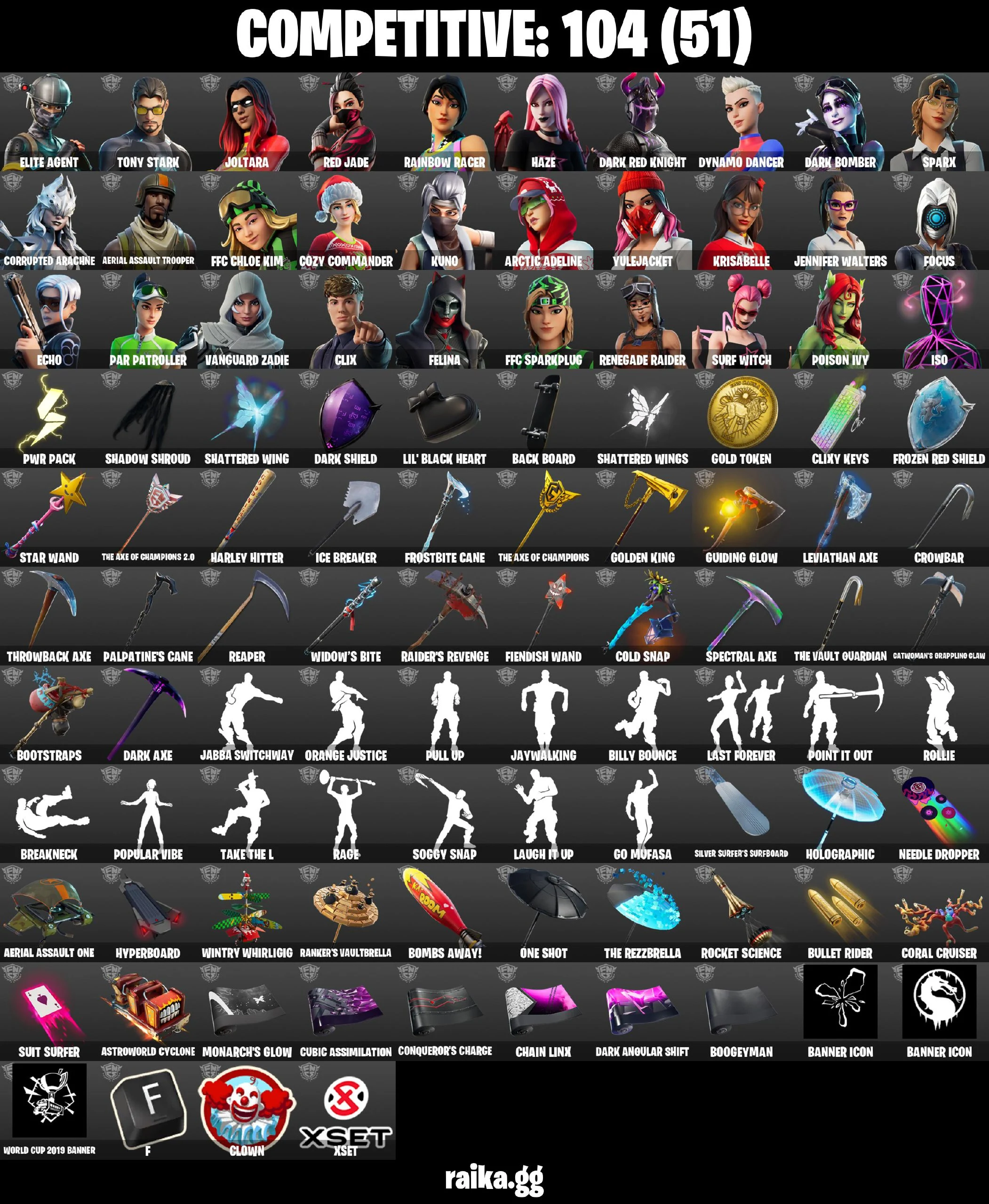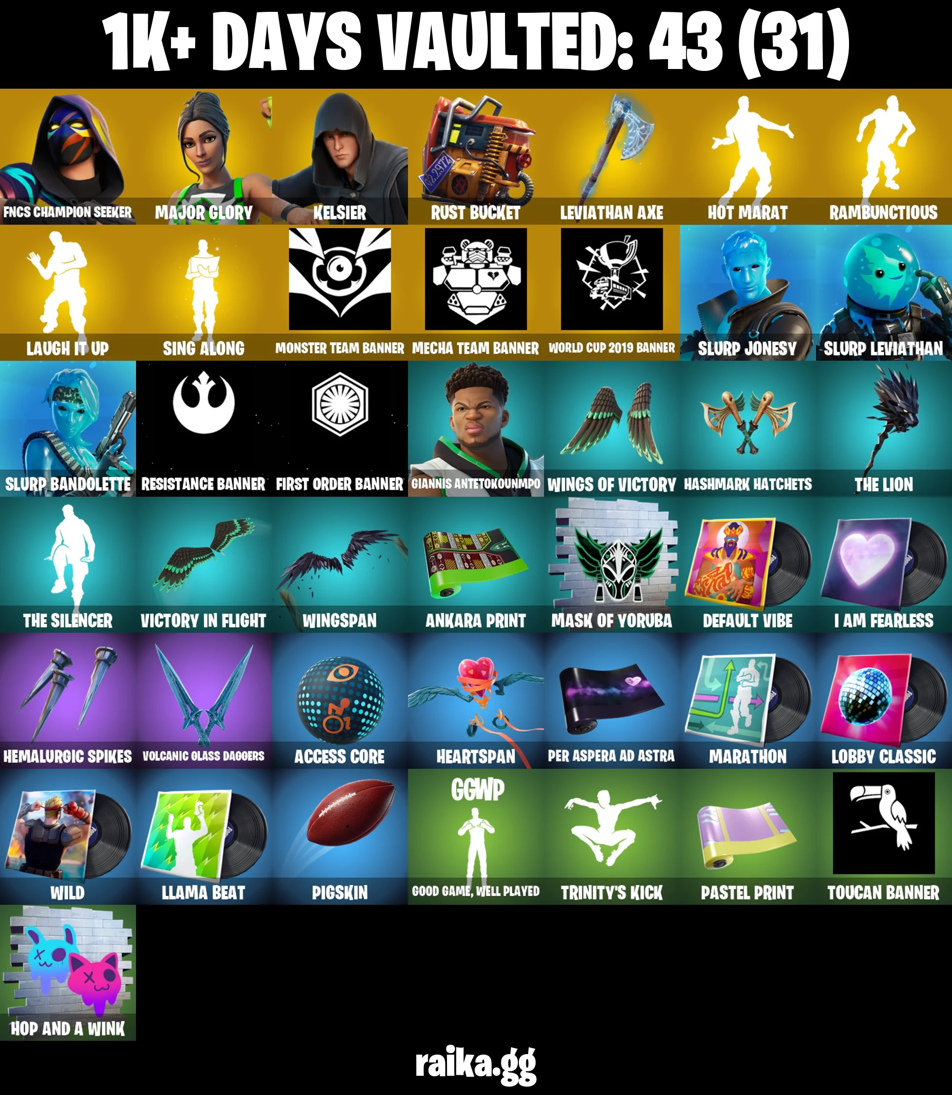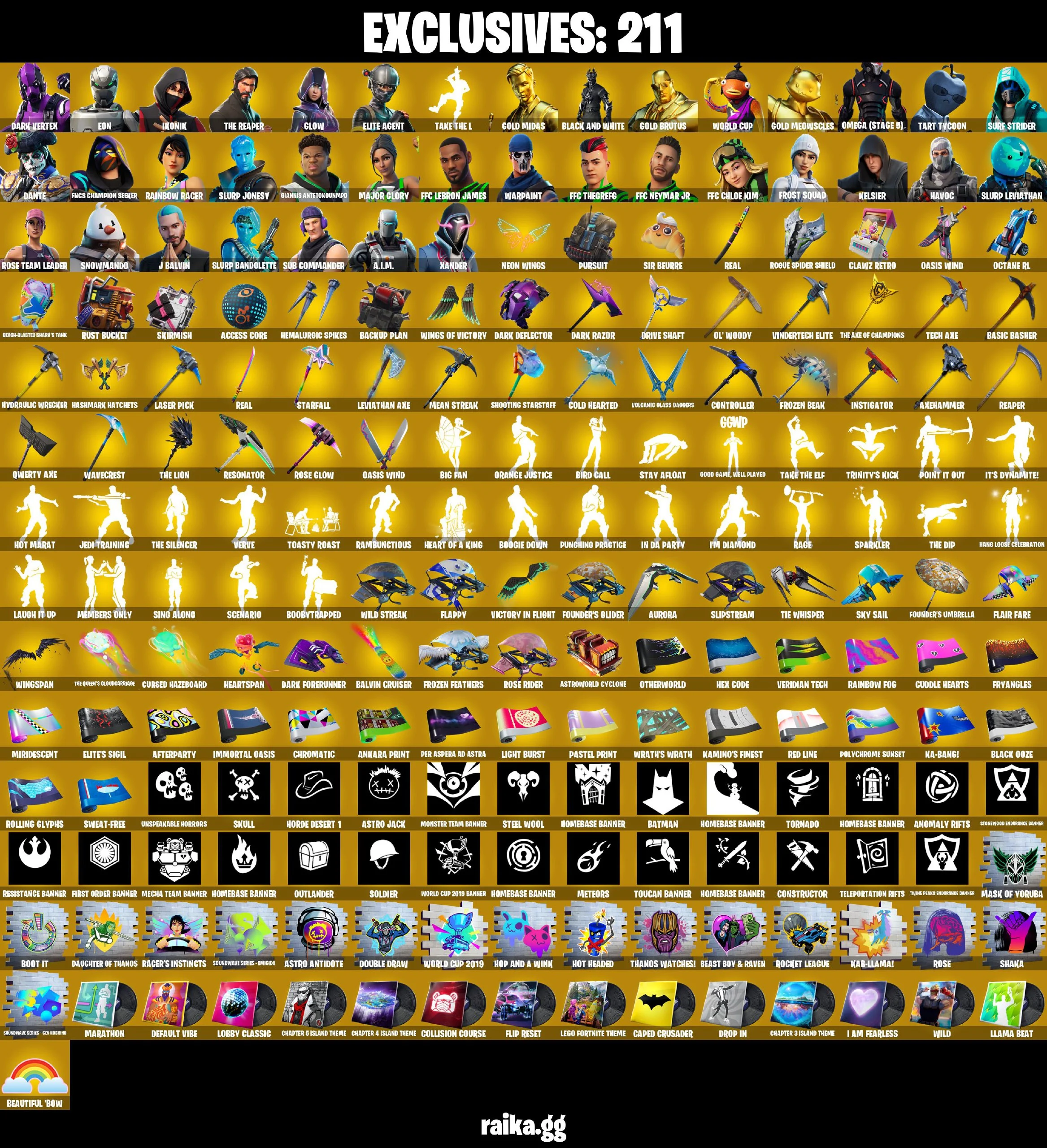 👑577 skins👑426 Emotes👑IKONIK👑Dark Vertex👑EON👑RSK👑The Reaper👑Leviathan Axe👑Take The L👑Laugh it Up👑Rambunctious👑Marvel👑DC👑ICON👑Stacked👑OG ACCOUNT