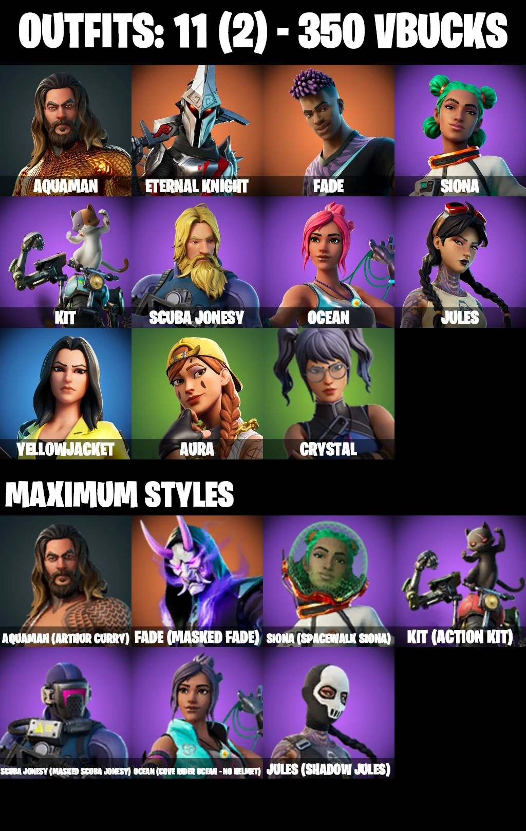 [ALL PLATFORMS] โก 11 SKINS ๐ AQUAMAN ARTHUR CURRY ๐ FADE ๐ SHADOW JULES ๐ OCEAN MAX ๐ SIONA MAX ๐ SING ALONG ๐ ASTROWORLD CYCLONE โก FULL ACCESS