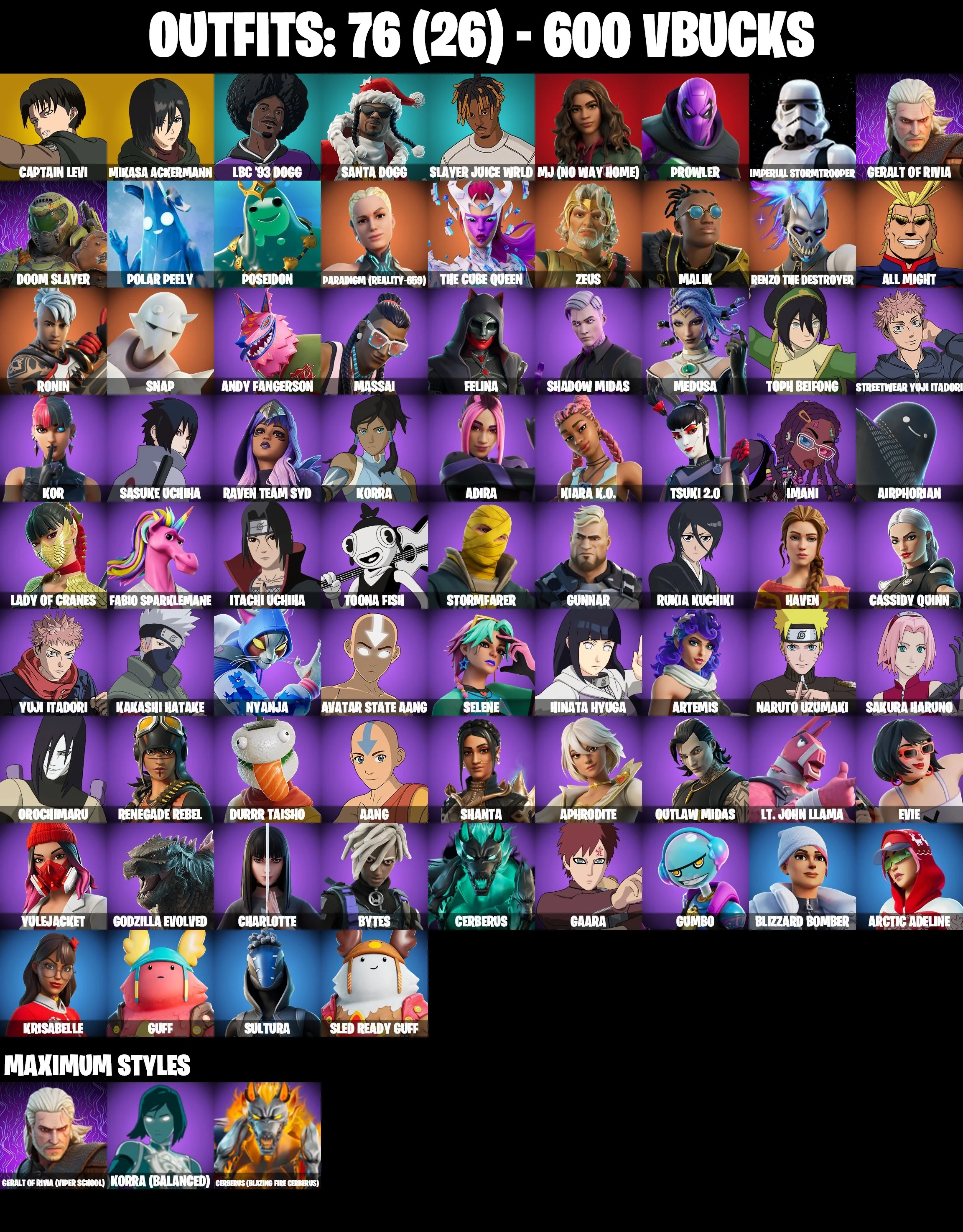 [ALL PLATFORMS] โก 76 SKINS ๐ CAPTAIN LEVI ๐ MIKASA ACKERMANN ๐ STAR WAND ๐ ITACHI UCHIHA ๐ NARUTO ๐ SASUKE UCHIHA ๐ KAKASHI ๐ GAARA โก FULL ACCESS