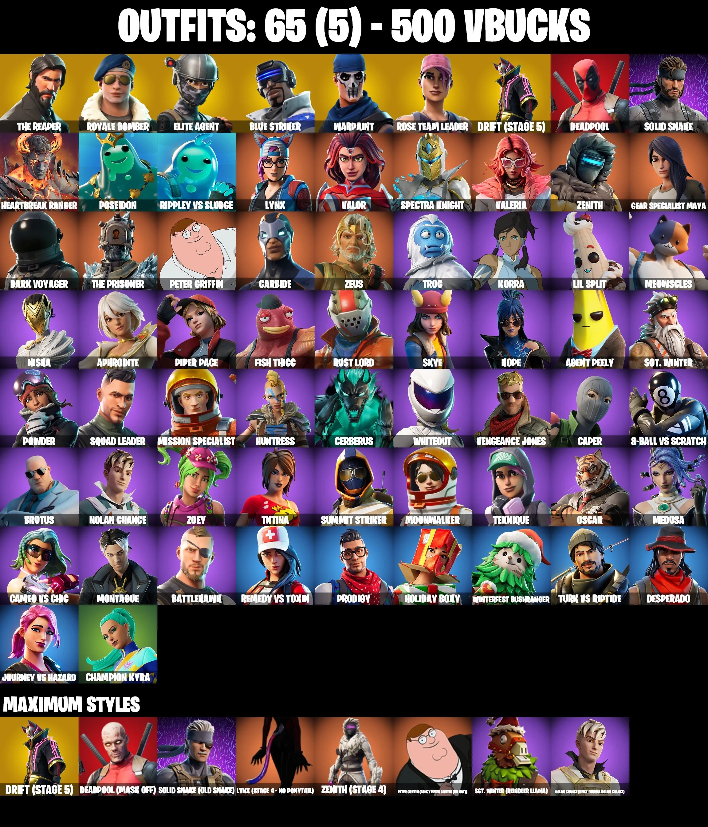 [ALL PLATFORMS] โก 65 SKINS ๐ THE REAPER ๐ ROYALE BOMBER ๐ OG STW ๐ TAKE THE L ๐ ELITE AGENT ๐ TAKE THE ELF ๐ DRIFT MAX ๐ BLUE STRIKER