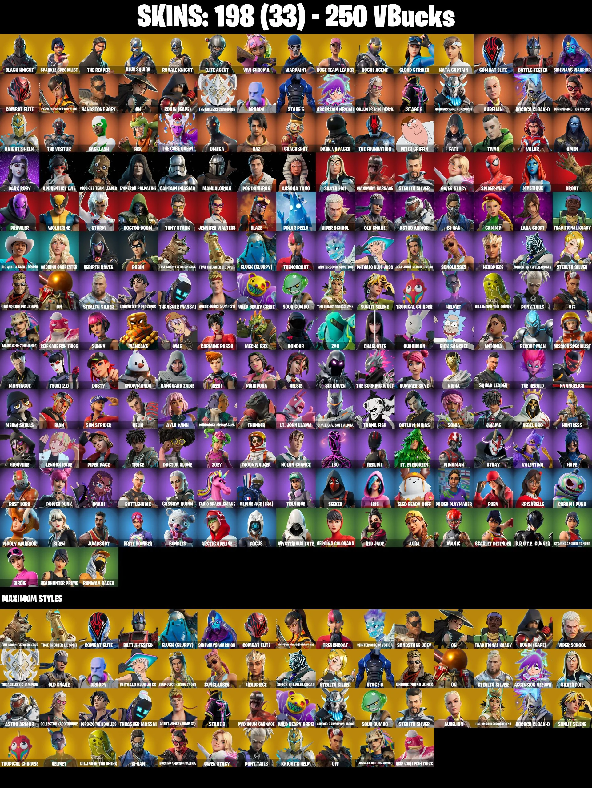 💥🌟💥 EXCLUSIVE OFFER 💥🌟💥 198 SKINS 💎 BLACK KNIGHT 💎 POKI 💎 THE LOOK 💎 FLOSS 💎 TAKE THE L 💎 THE REAPER 💎 ROYALE KNIGHT 💎 ELITE AGENT 💎 VIVI CHROMA 💎 ROGUE AGENT 💎 FULL ACCESS