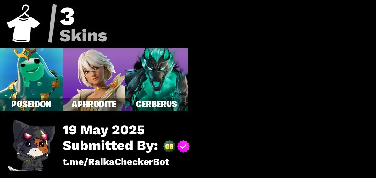 [PC] 3 Skins | Poseidon | Aphrodite | Cerberus | Cozy Conch | Prized Llama | Hadean Gate | Heart's Rest | Breakshore Trident | FN43