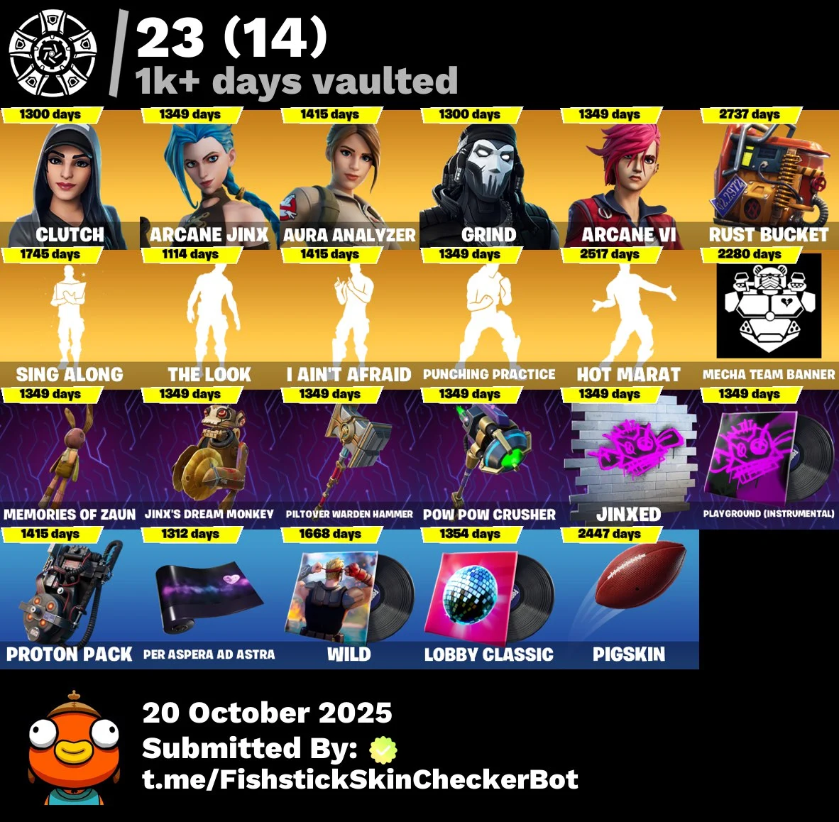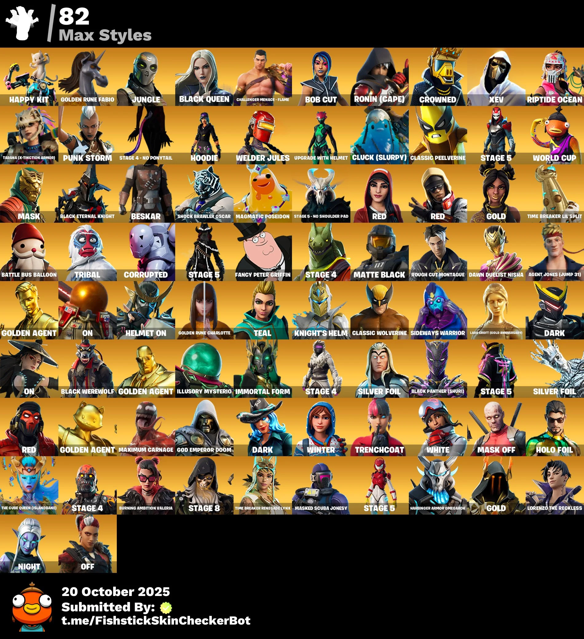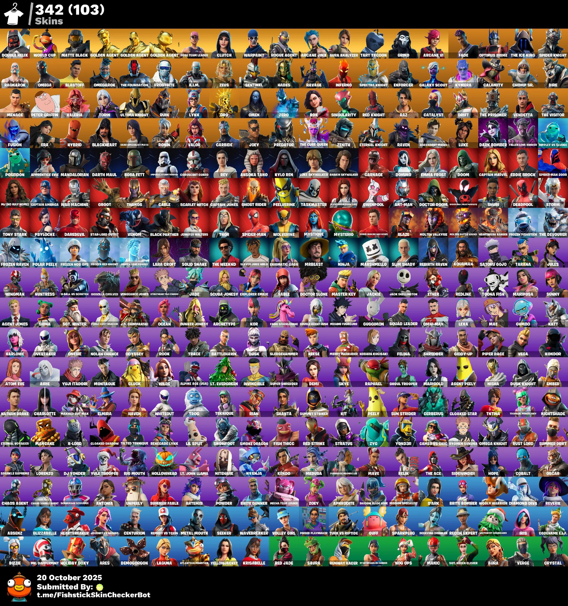 [PC] 342 skins | OG STW | Arcane Jinx | Merry Mint Axe | Double Helix | Arcane Vi | Take The L | WORLD CUP | Gold Midas | Gold Brutus | Gold Meowscles | Clutch | Rogue Agent | | Master Chief (Matte Black) 750 VB