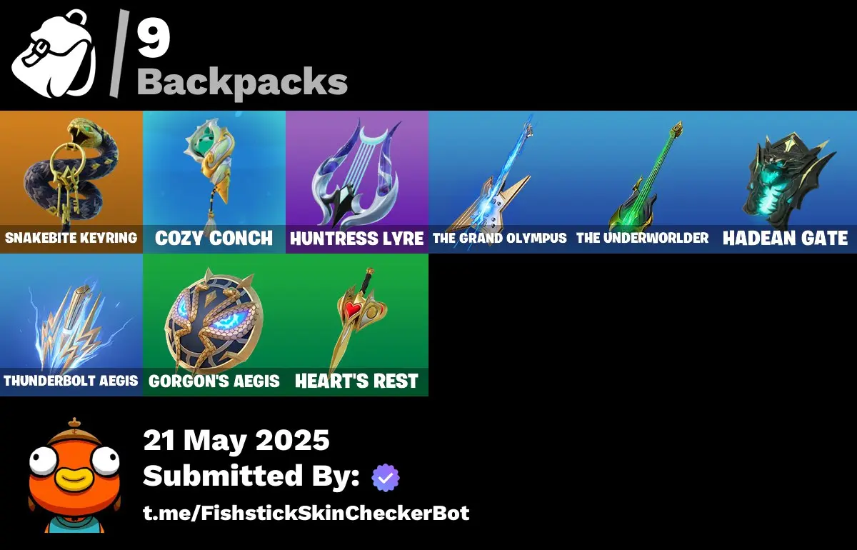 [PC] 6 Skins | Zeus | Hades | Poseidon | Artemis | Medusa | Cerberus | Aphrodite | Snakebite Keyring | Cozy Conch | Huntress Lyre | 700 VB | FN29