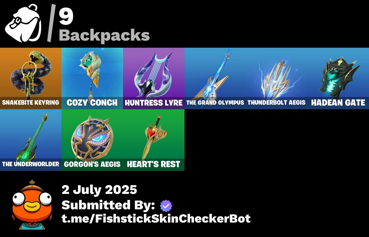 [PC] 7 Skins | Zeus | Hades | Poseidon | Aphrodite | Artemis | Cerberus | Medusa | Snakebite Keyring | Cozy Conch | Huntress Lyre | 850 VB | FN25