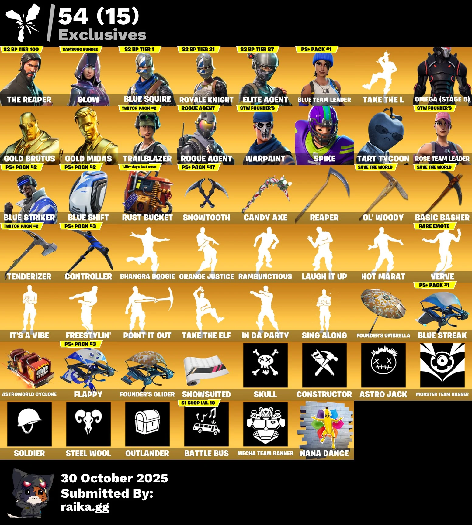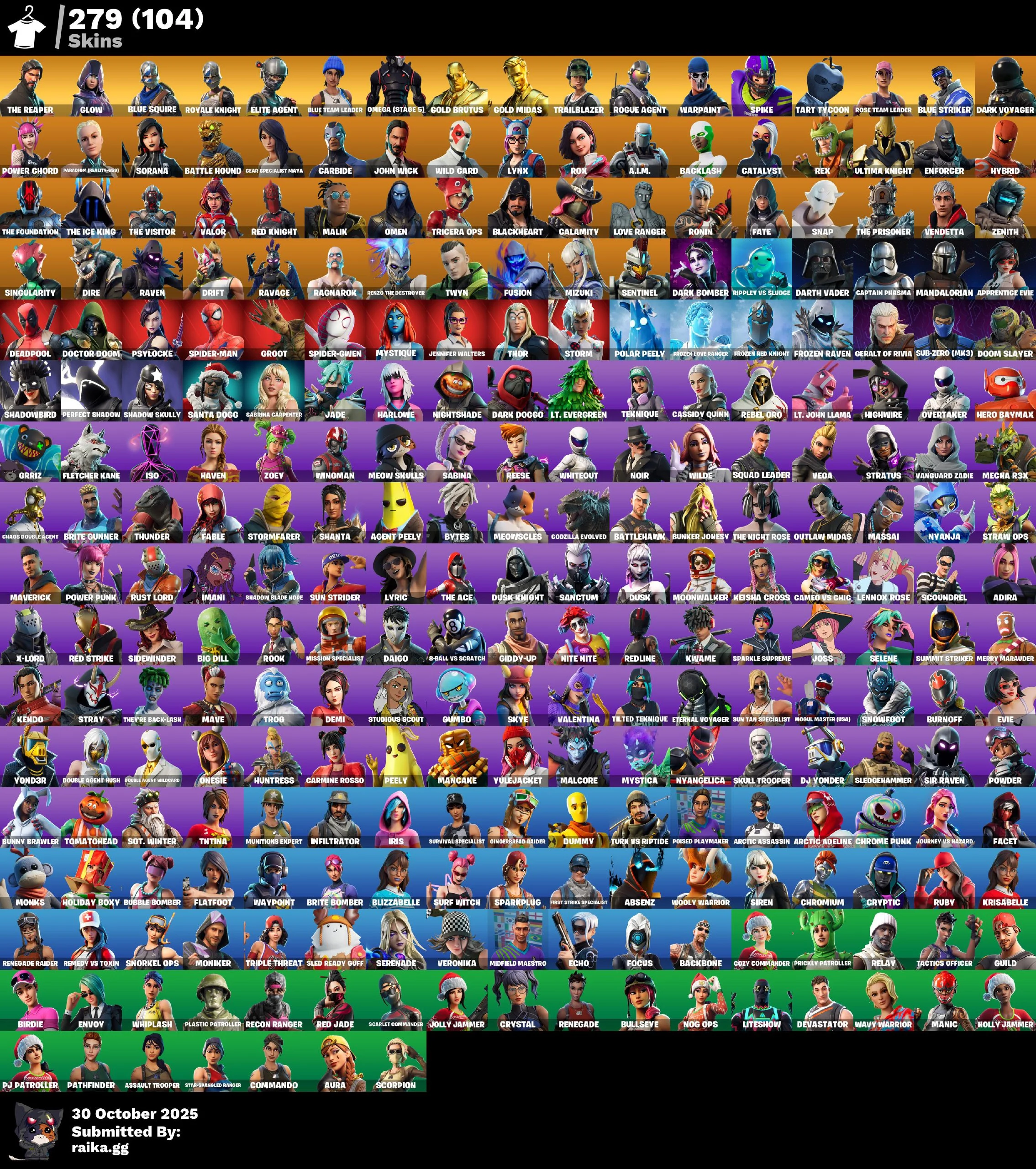 [PC | PSN | XBOX] 279 skins | The Reaper | Glow | OG Deluxe edition : ✅ | Renegade Raider | | Blue Squire | Royale Knight | Take the L | Elite Agent | Blue Team Leader | Omega (stage 5) | 300 VB