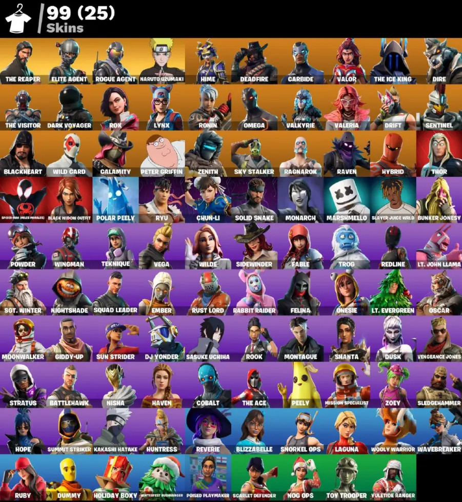(PC PSN XBOX) 99 SKINS / THE REAPER / FA / ELITE AGENT / SASUKE UCHIHA / KAKASHI HATAKE / NARUTO UZUMAKI / TAKE THE L / CHUN-LI / MARSHMELLO