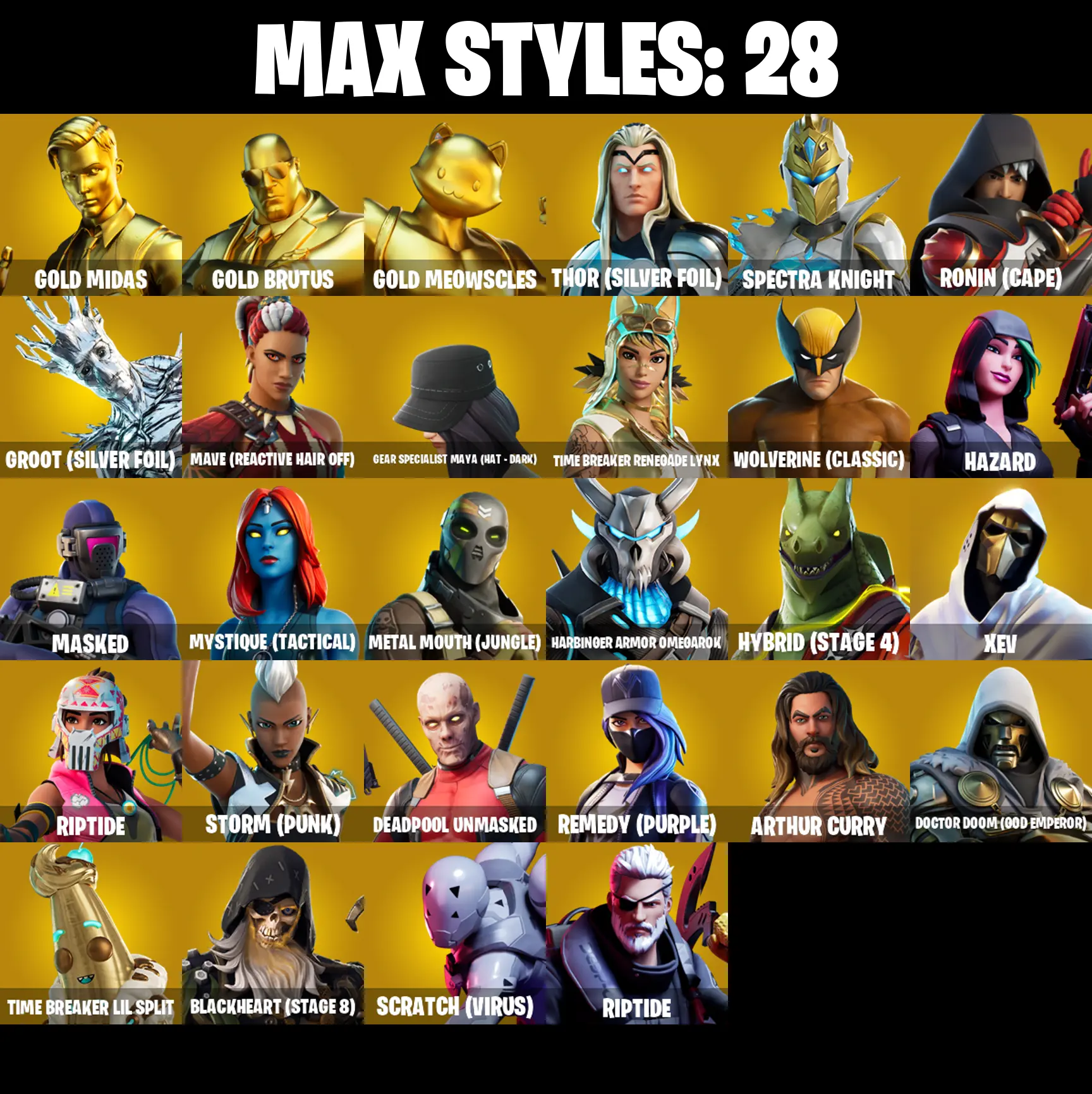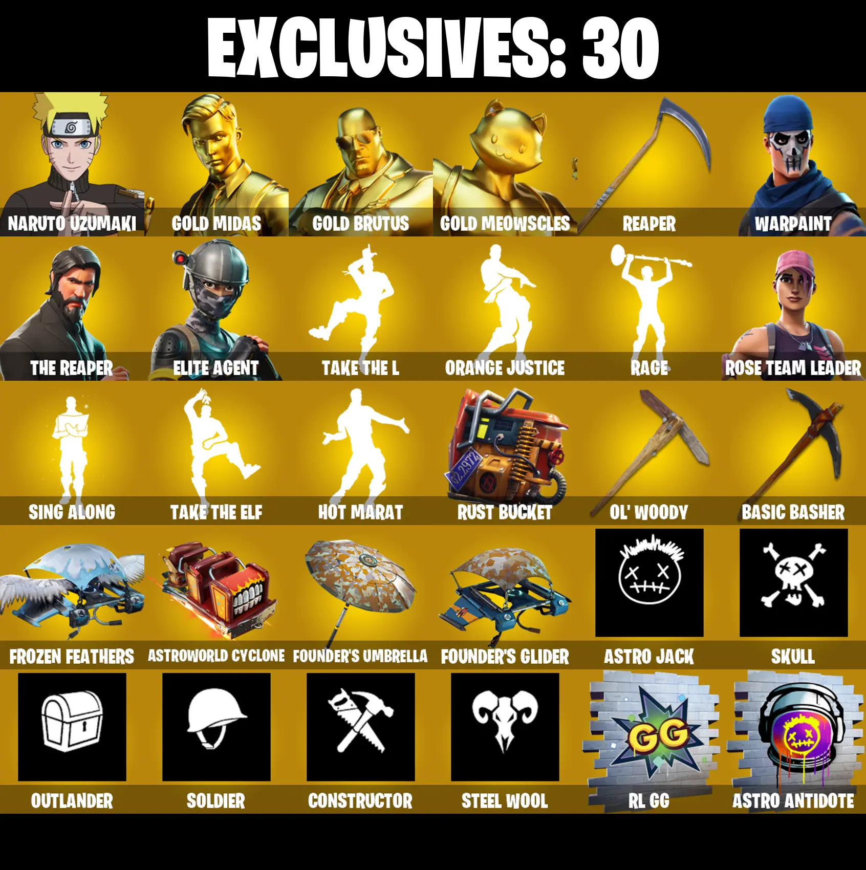 PC/PSN/XBOX ♨️103 skins ✨ OG STW ✨ Naruto Uzumaki ✨ Kakashi Hatake ✨ Deadpool ✨ Gold Midas ✨ Gold Brutus ✨ Gold Meowscles ✨ Reaper ✨ The Reaper ✨ #B856
