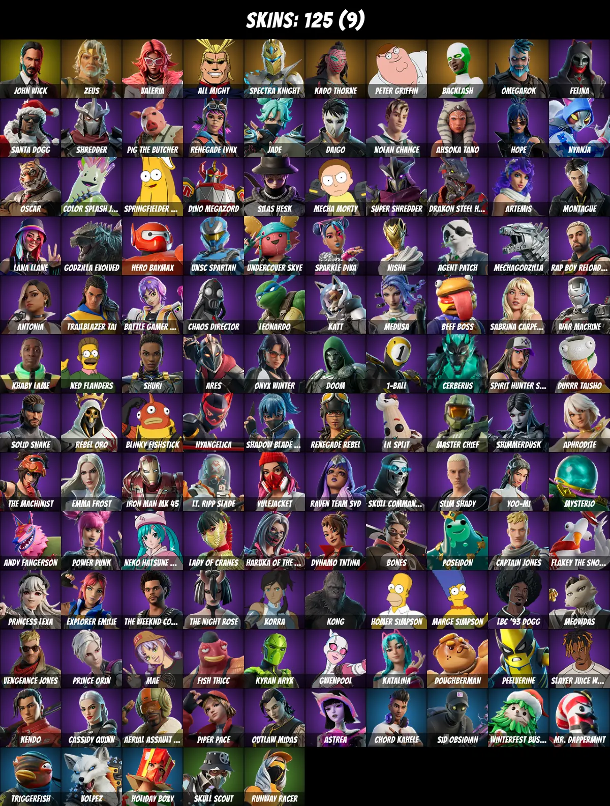 โกPC/PSN/XBOXโก 125 skins ๐ John Wick ๐ Backlash ๐ Gwenpool ๐ Master Chief ๐ Zeus ๐ Peelverine ๐ Peter Griffin ๐ Poseidon ๐ Slayer Juice Wrld ๐ Valeria ๐ Omegarok ๐ All Might ๐ Spectra Knight ๐ Kado Thorne ๐ Ol' Woody ๐ Felina ๐ Santa Dogg ๐ 250 V-Bucks ๐