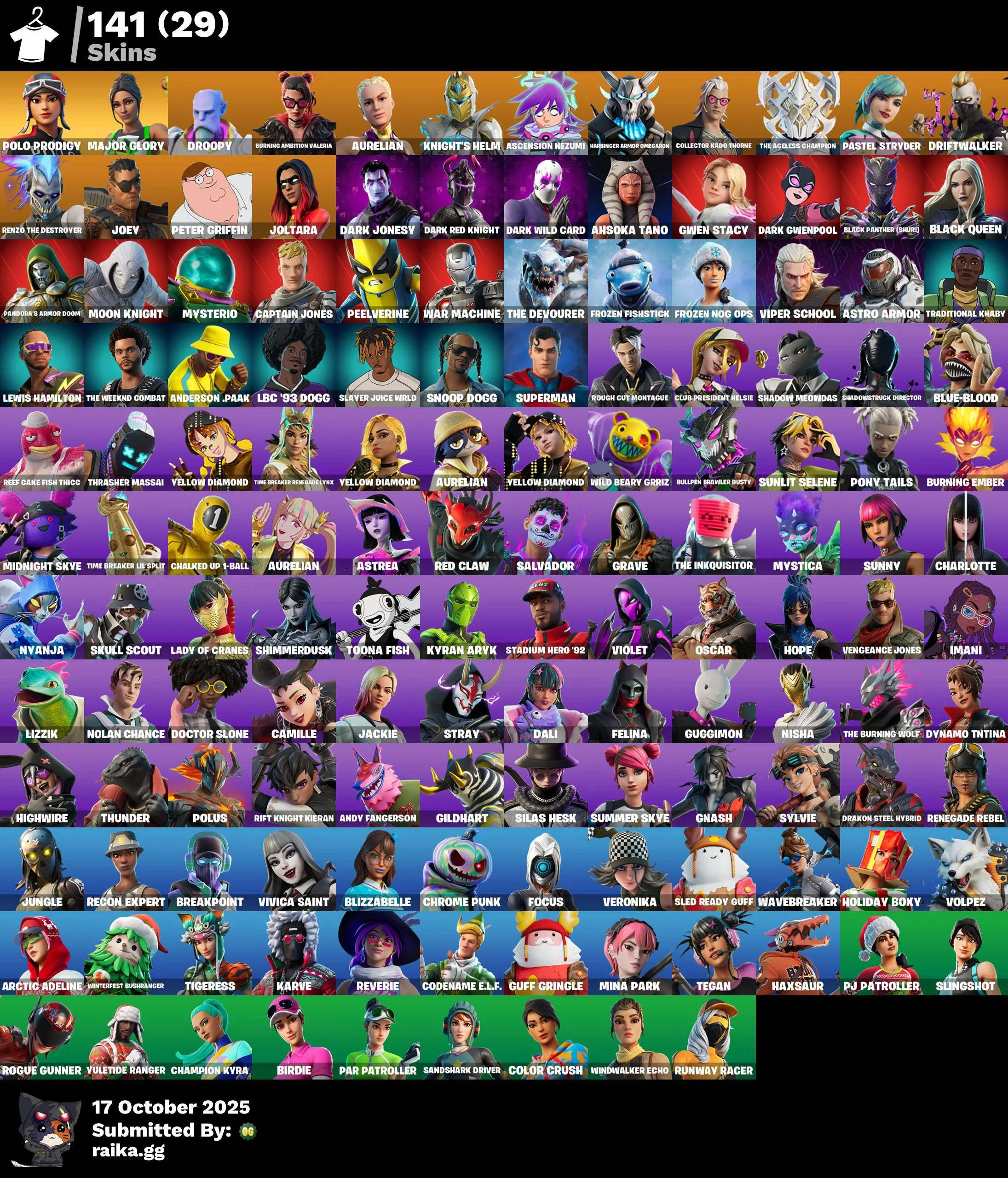 [PC/PSN/XBOX] 141 skins | Polo Prodigy | Candy Axe | Harley Hitter | Moon Knight | Star Wand | Get Griddy Mam28