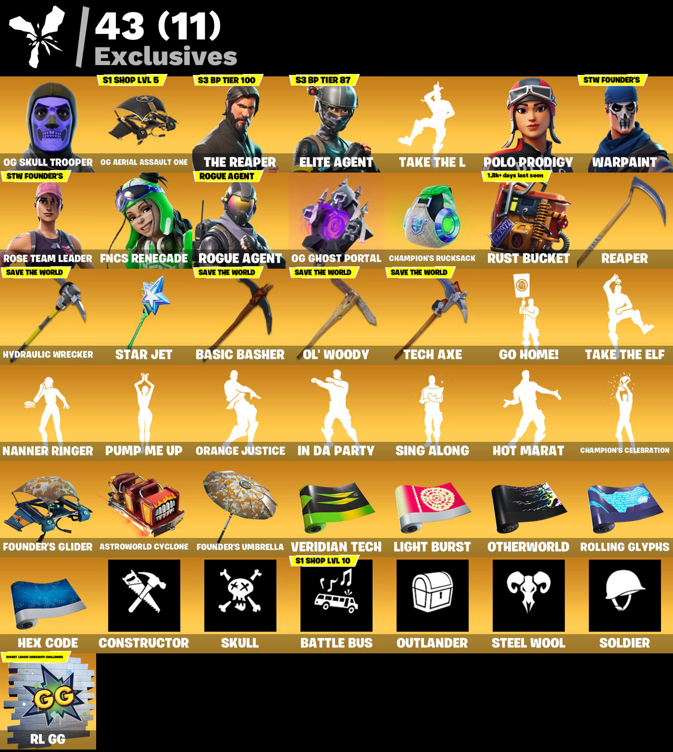 PC,PSN,XBOX 283 SKINS FA ⸱ STW ⸱ OG SKULL TROOPER ⸱ POLO PRODIGY ⸱ REAPER ⸱ PSYCHO BANDIT,SABRINA CARPENTER,LYRIC,BENDER,BLACK WIDOW RK1709