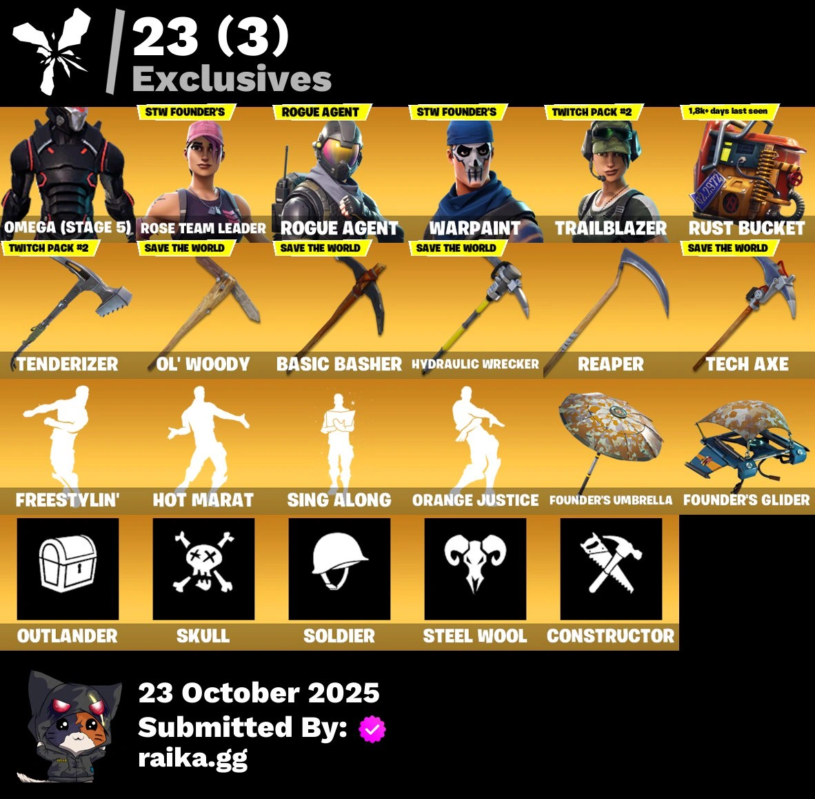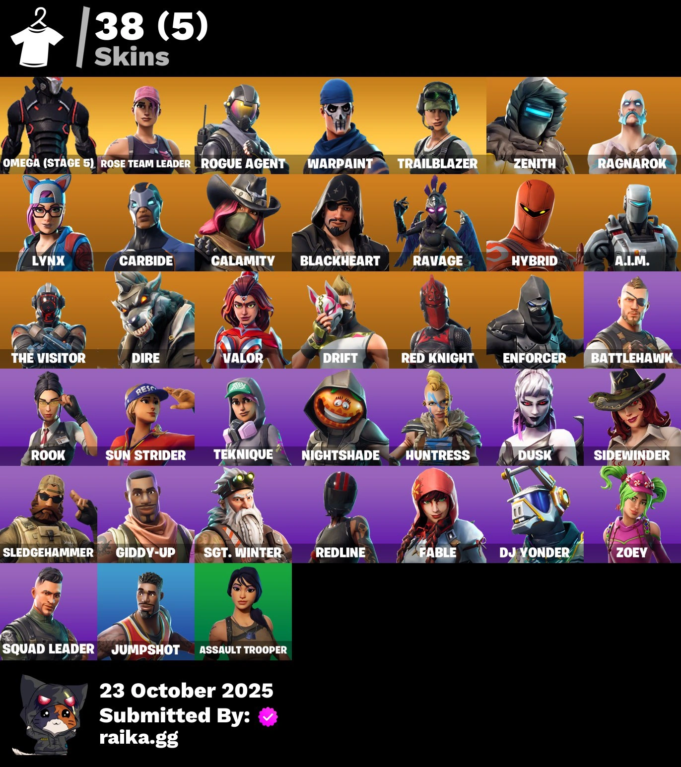 [PC/PSN/XBOX] 38 skins | OG STW | Omega (stage 5) | Rogue Agent | Trailblazer | Zenith | Ragnarok | Lynx | Carbide | Calamity | Blackheart | Ravage | Hybrid | 150 VB