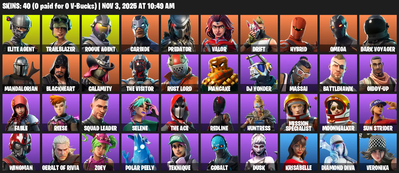 [PC/PSN/XBOX] | 40 skins | 950 V-bucks | Take The L | Elite Agent | Omega | Trailblazer | Rogue Agent | Carbide | Predator | Valor | #ATX1186 | #MBFN