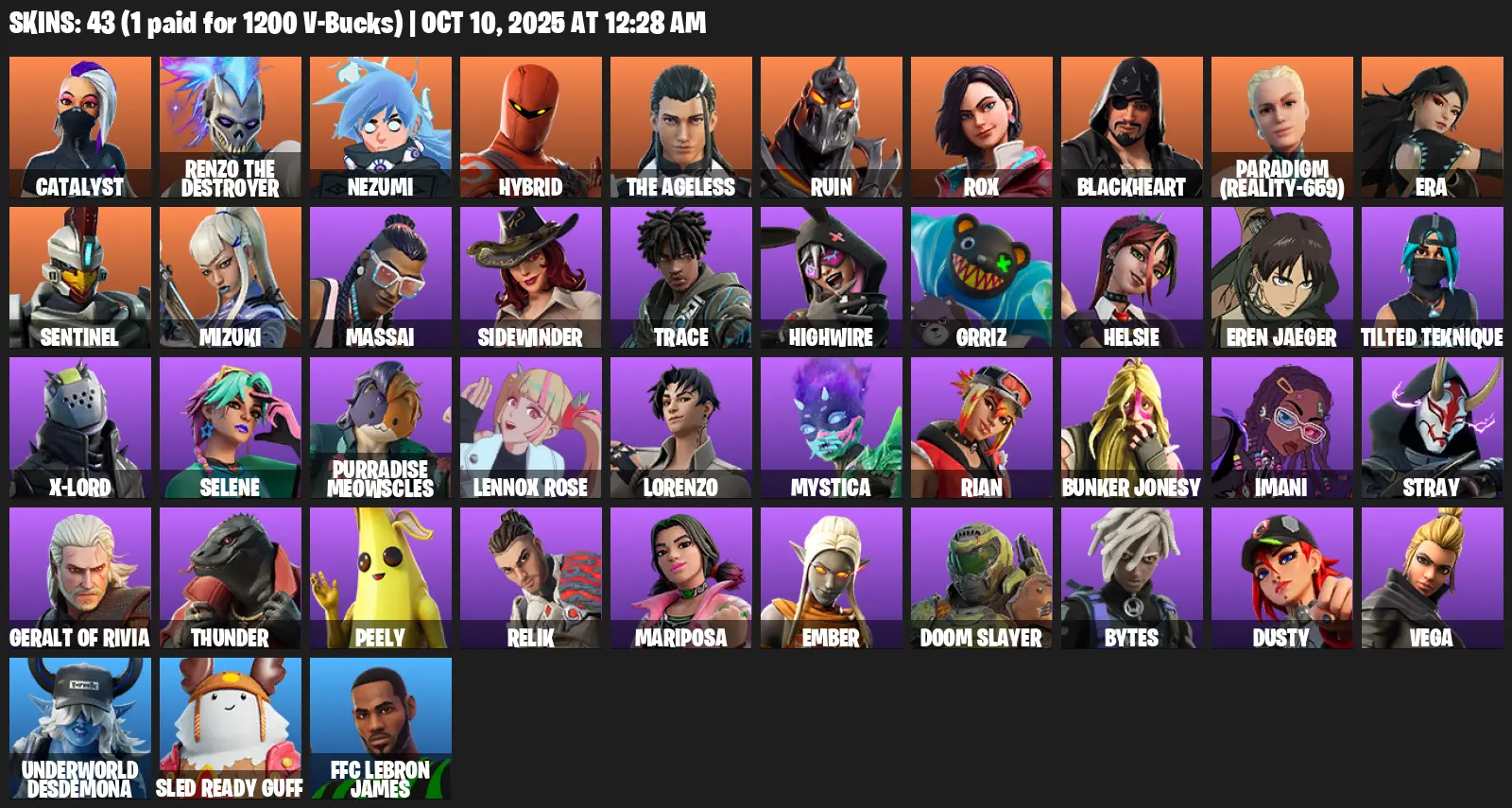 [PC/PSN/XBOX] | 43 skins | Catalyst | Renzo the Destroyer | Nezumi | Hybrid | The Ageless | Ruin | Rox | Blackheart | #HLO6497 | #MBFN