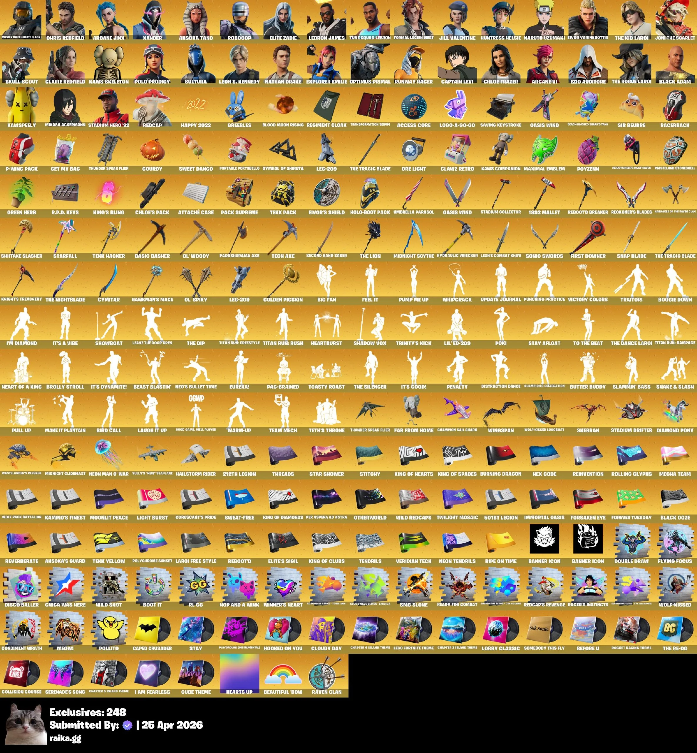 [PC/PSN/XBOX] 902 skins | 805 emotes | Elite Zadie | Master Chief (Matte Black) | Arcane Jinx | Xander | Elite Zadie | Jill Valentine | Naruto Uzumaki | Polo Prodigy | Sultura | Leave the Door Open | Laught it up | 400 VB