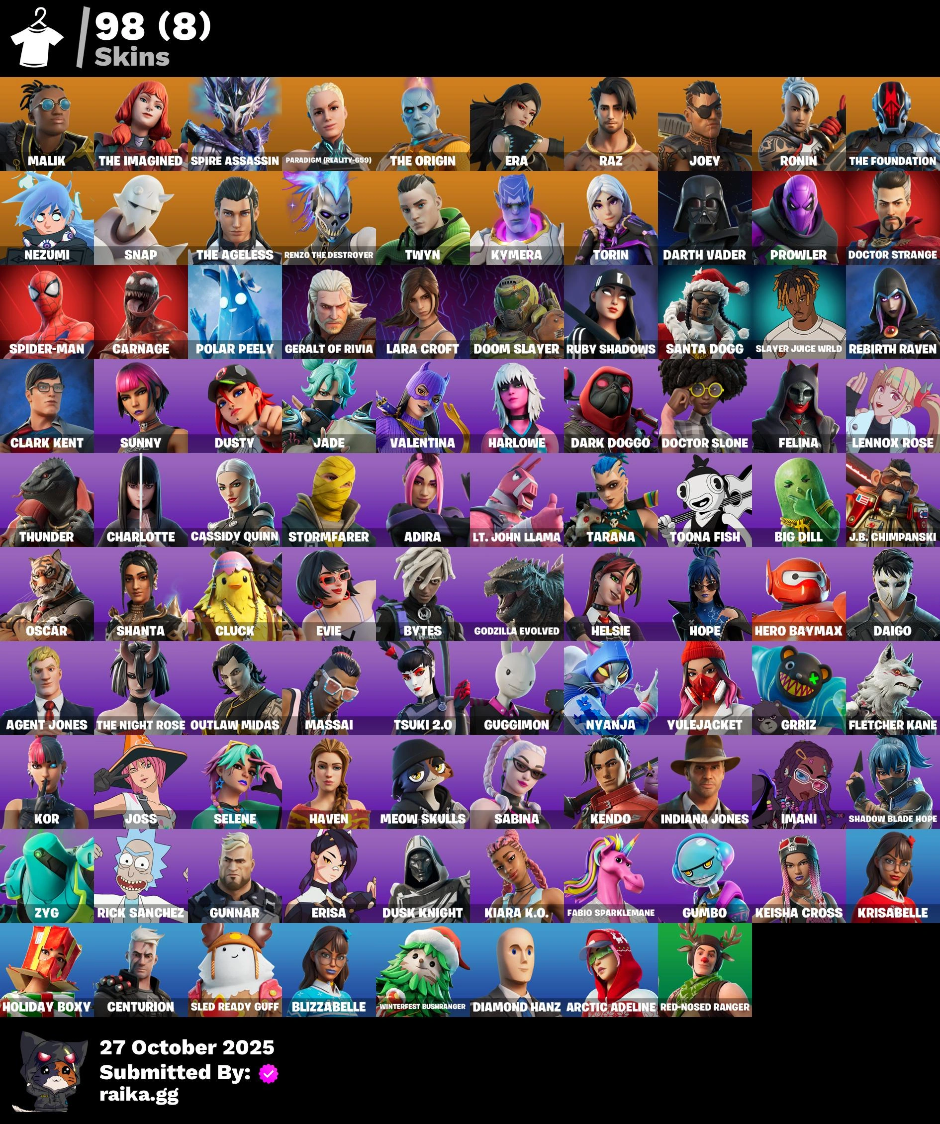 [PC/PSN/XBOX] 98 skins | Malik | The Imagined | Spire Assassin | Paradigm (Reality-659) | The Origin | Era | Raz | Joey | Ronin | The Foundation | Nezumi | 1650 VB