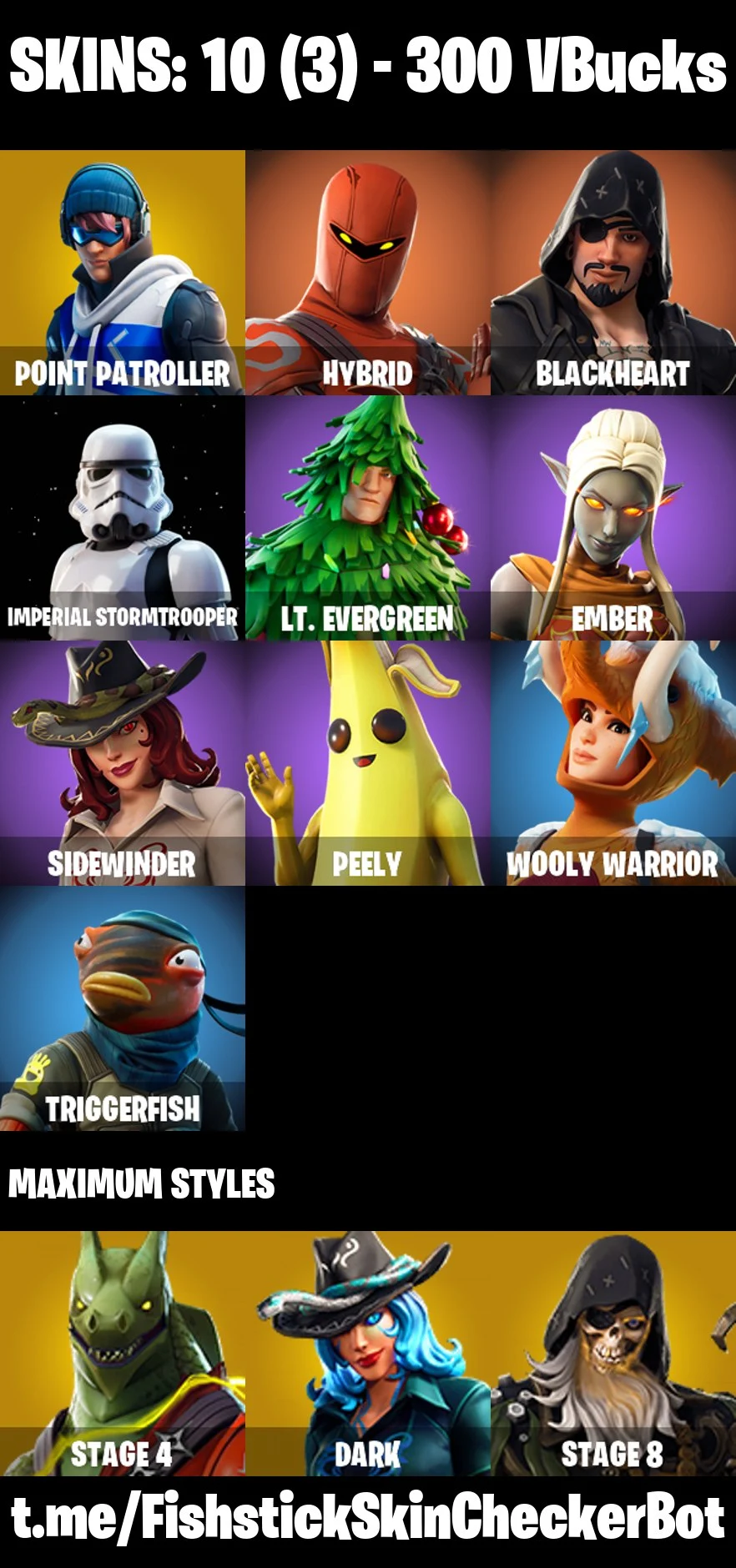 【PC/PSN/XBOX】10 Skins | Point Patroller | Hybrid | Blackheart | Imperial Stormtrooper | Lt. Evergreen | Ember | Sidewinder | Peely