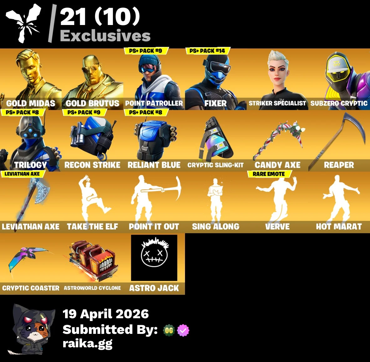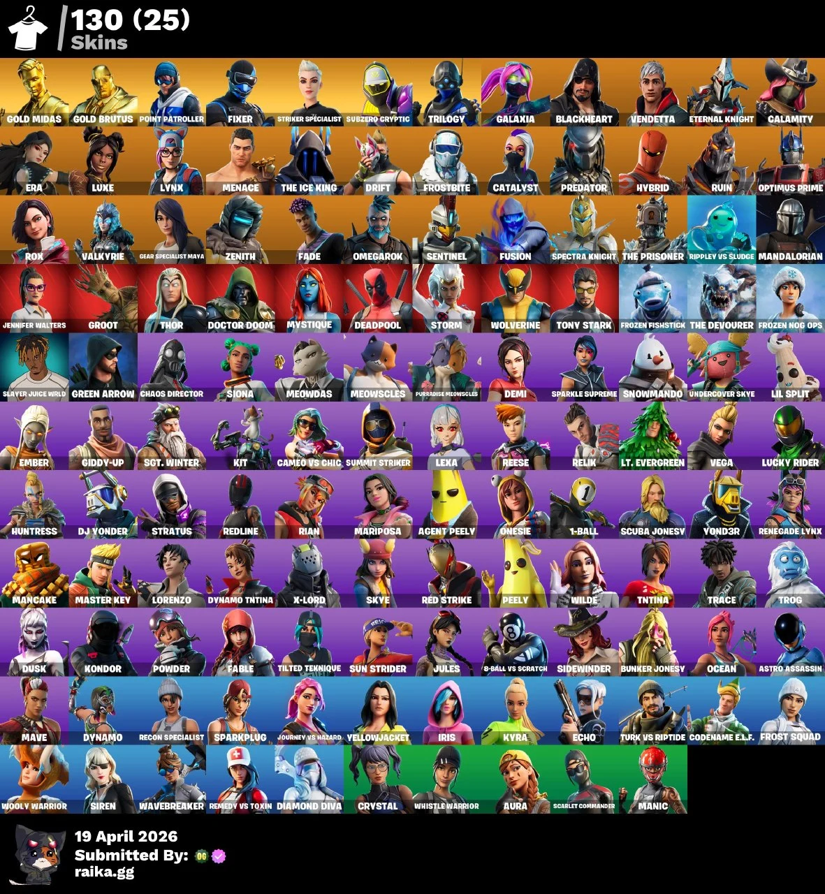[PC/PSN/XBOX/Nintendo] 130 skins F/A : Leviathan Axe | Gold Brutus | Gold Midas | Subzero Cryptic | Fixer | Striker Specialist | Point Patroller | Trilogy | Spectra Knight |