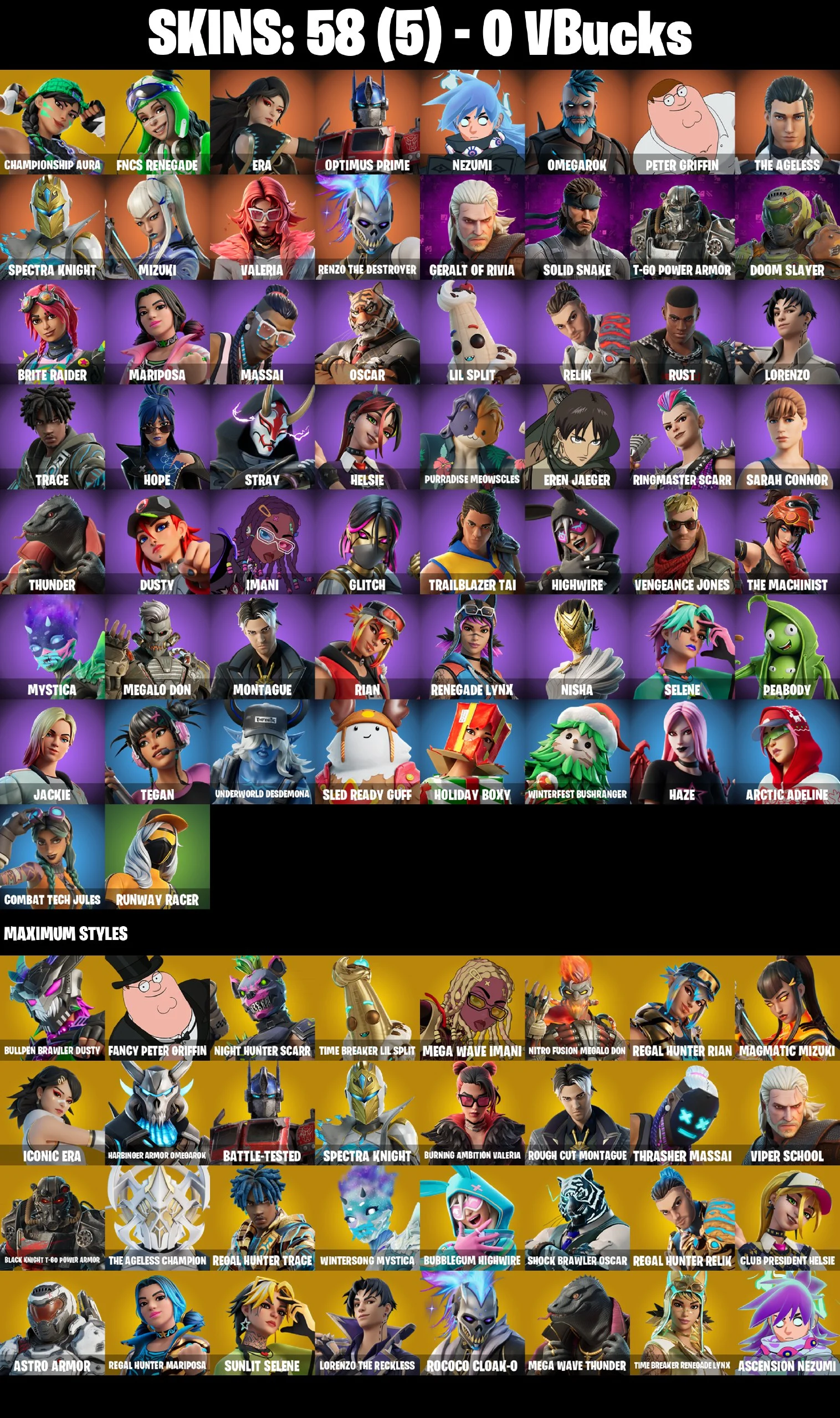 ⭐ [PC/PSN/XBOX/NINTENDO/MOBILE] 58 SKINS | FNCS RENEGADE | CHAMPIONSHIP AURA | OMEGAROK | HIGHWIRE | GLITCH | RENEGADE LYNX | EREN JAEGER | HELSIE | NISHA | SARAH CONNOR | HAZE | WASTELANDER'S REVENGE | ICE BREAKER | 0 VBUCKS | EMAIL