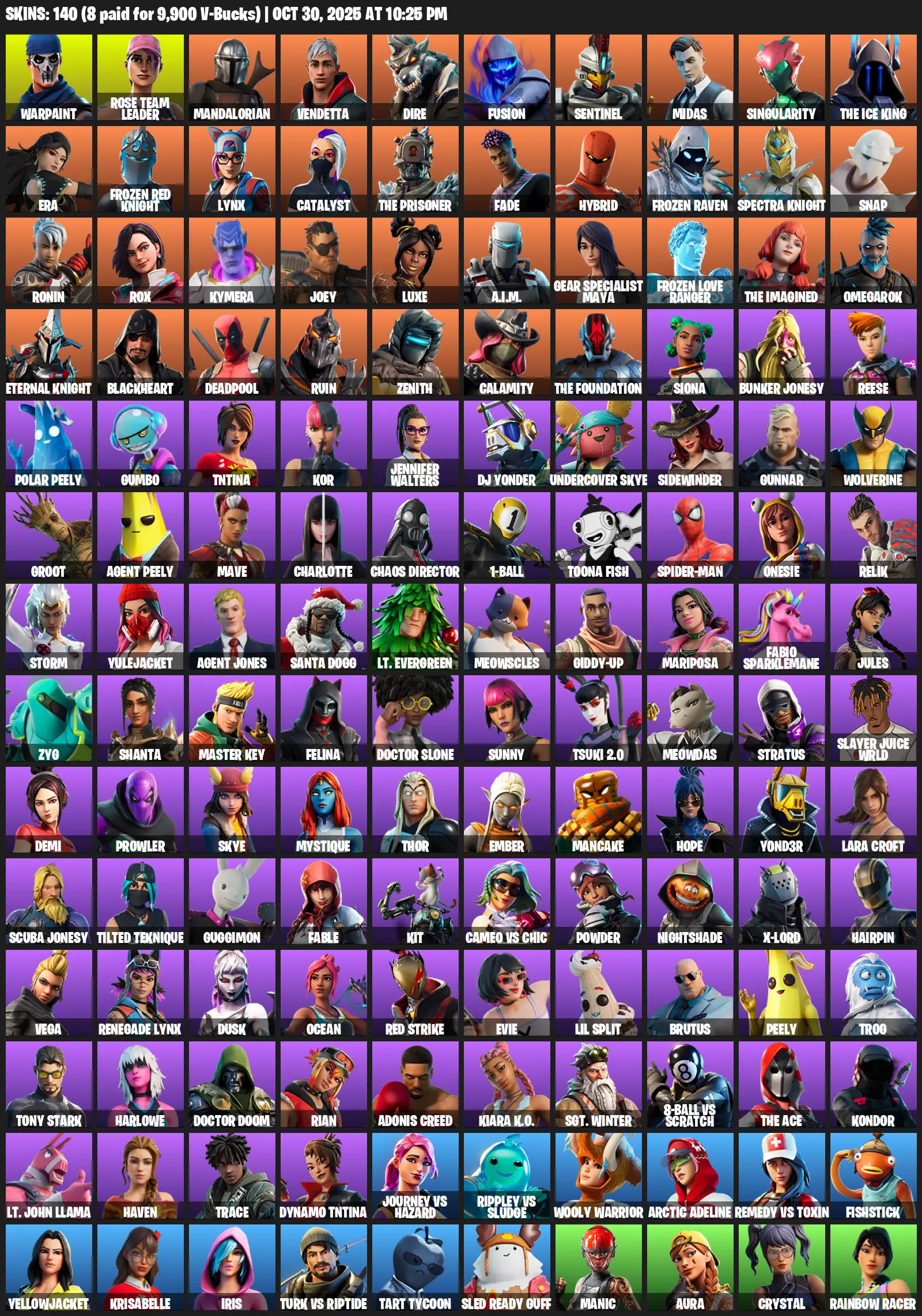 [PC/XBOX] | 140 skins | OG STW | Lara Croft | Reaper Axe | Warpaint | Rose Team Leader | Mandalorian | Vendetta | Dire | Fusion | #AYD1381 | #MBFN
