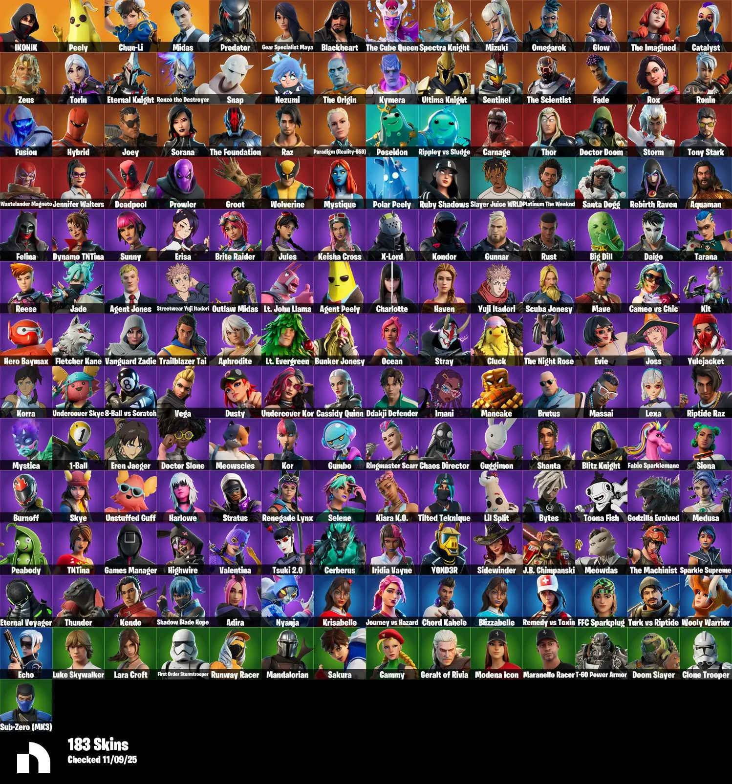 [PC/XBOX] 183 Skins + Ikonik + Chun-Li + Ruby Shadows + DeadPool + Peely + Midas + Glow + Catalyst + Torin + Spectre Knight + Sorana + Lara Croft