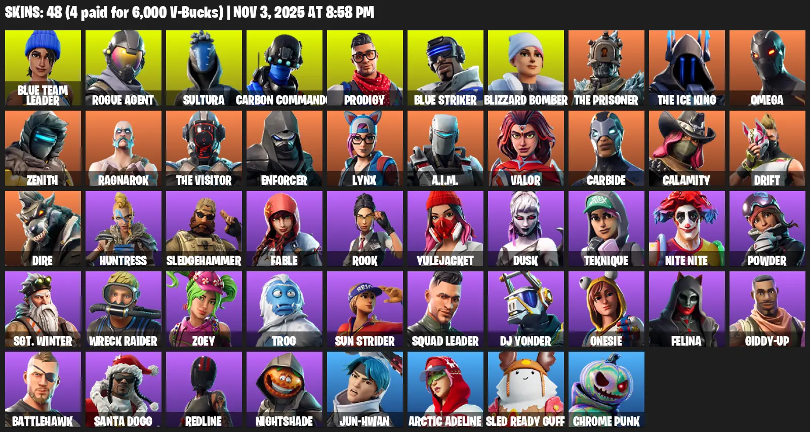 [PC/XBOX] | 48 skins | Omega | Blue Team Leader | Rogue Agent | Sultura | Carbon Commando | Prodigy | Blue Striker | Blizzard Bomber | S4G