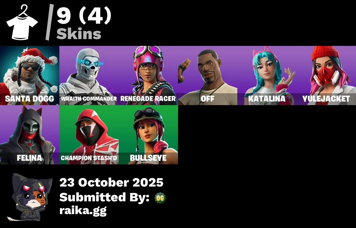 [PC/XBOX] 9 skins | Santa Dogg | Wraith Commander | Renegade Racer | off | Katalina | Yulejacket | Felina mssh869