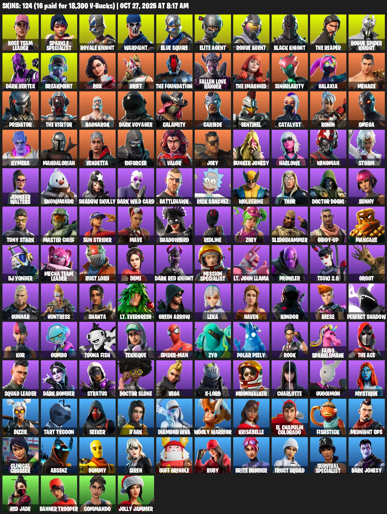 [PC/XBOX/PSN] 124 Skins | Rose Team Leader | Sparkle Specialist | Royale Knight | Warpaint | Blue Squire | Elite Agent | Rogue Agent | Black Knight | The Reaper | Rogue Spider Knight | Dark Vertex | Breakpoint | Rox | Drift | The Foundation