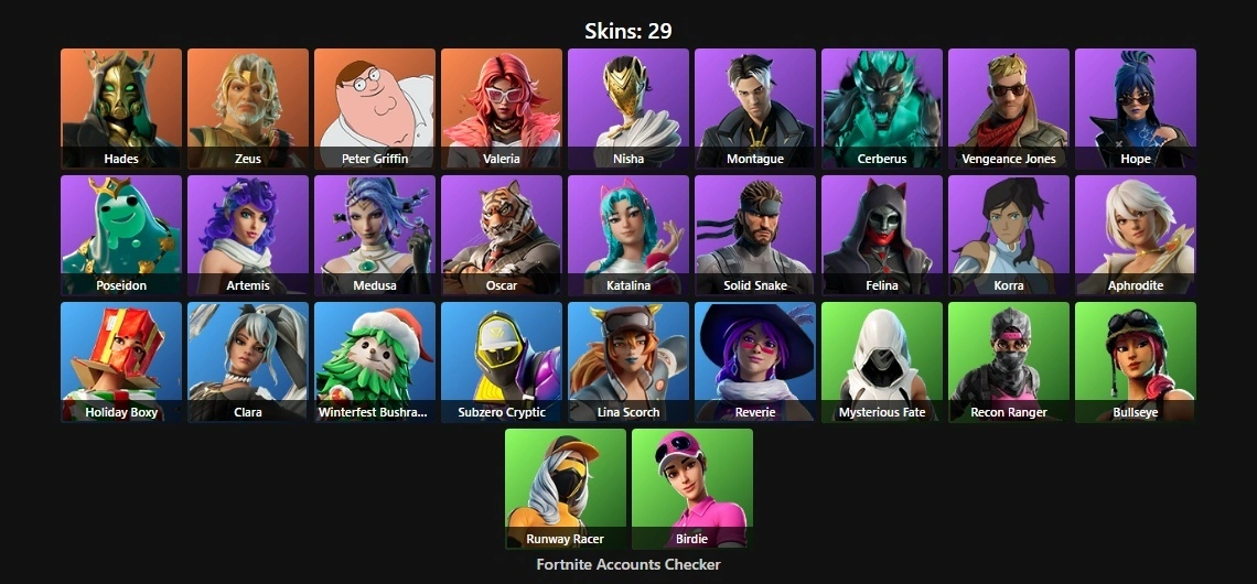 PC/XBOX/PSN 29 Skins⚡ | Hades | Zeus | Peter Griffin | Valeria | Nisha | Montague | Cerberus | Vengeance Jones | Hope | Poseidon | Artemis | Medusa | Oscar