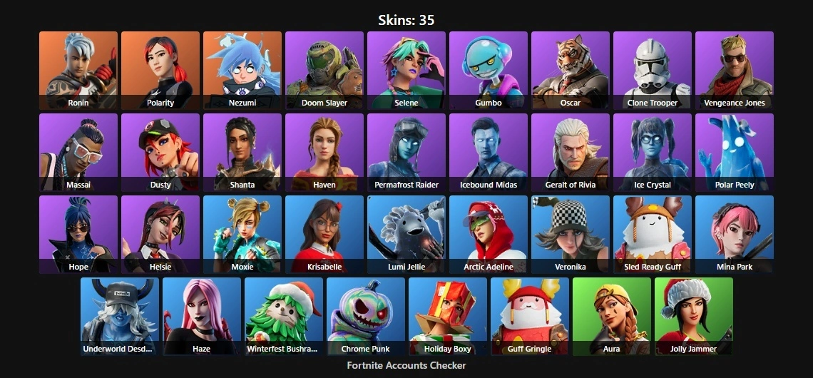 PC/XBOX/PSN 35 Skins⚡ | Ronin | Polarity | Nezumi | Doom Slayer | Selene | Gumbo | Oscar | Clone Trooper | Vengeance Jones | Massai | Dusty | Shanta | Haven