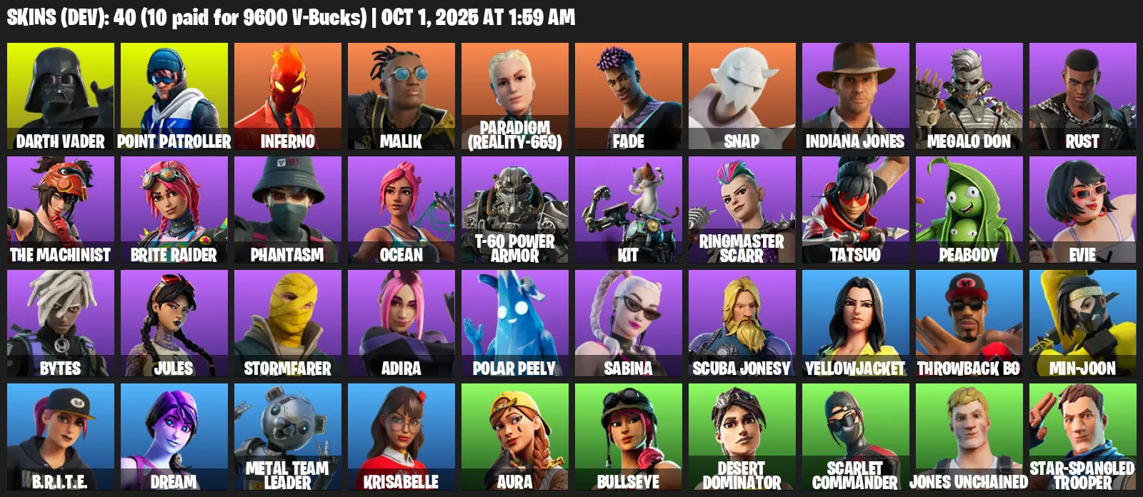 PC/XBOX/PSN 40 Skins⚡ | Darth Vader | Point Patroller | Inferno | Malik | Paradigm (Reality-659) | Fade | Snap | Indiana Jones | Megalo Don | Rust