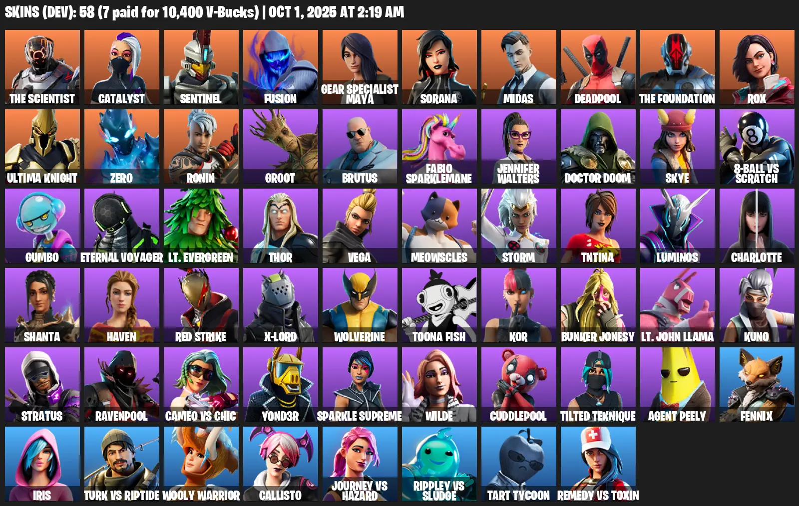 PC/XBOX/PSN 58 Skins⚡ | Midas | Deadpool | The Scientist | Catalyst | Sentinel | Fusion | Gear Specialist Maya | Sorana | The Foundation | Rox