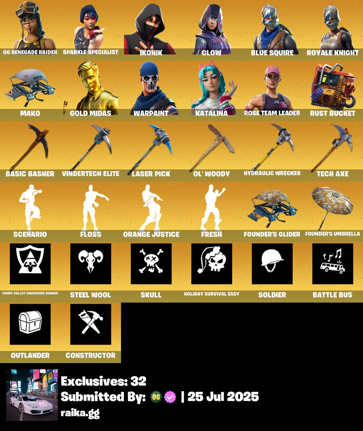 ๐ฅ๐๐ฅ EXCLUSIVE OFFER ๐ฅ๐๐ฅ 71 SKINS ๐ OG RENEGADE RAIDER ๐ IKONIK ๐ SPARKLE SPECIALIST ๐ GLOW ๐ BLUE SQUIRE ๐ ROYALE KNIGHT ๐ MAKO ๐ SCENARIO ๐ FLOSS