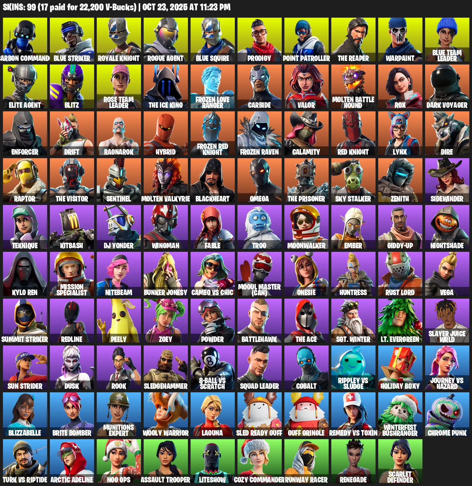 [PSN/XBOX/PC] 99 Skins | Carbon Commando | Blue Striker | Royale Knight | Rogue Agent | Blue Squire | Prodigy | Point Patroller | The Reaper | Warpaint | Blue Team Leader | Elite Agent | Blitz | Rose Team Leader | The Ice King | Frozen Love Ranger