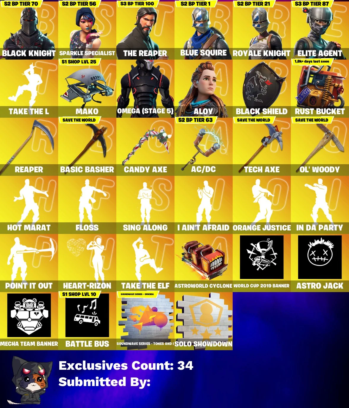 ππ₯ STACKED OG ACCOUNT π₯π 231 SKINS π BLACK KNIGHT π SPARKLE SPECIALIST π THE REAPER π FLOSS π TAKE THE L π BLUE SQUIRE π ROYALE KNIGHT π ELITE AGENT π OMEGA (STAGE 5) π ALOY π SENTINEL π MECHA CUDDLE MASTER π FULL ACCESS π