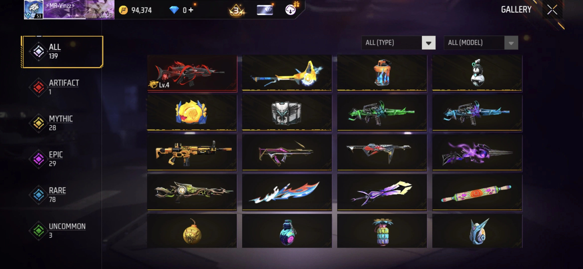B13|LV51/138 WEAPON (1 EVO + 28 Mythic)/SCAR ⸱ Megalodon Alpha Lv. 4/113 COSTUME (3 Mythic)/19 EMOT (1 Artifact + 4 Mythic)/20 BACKPACK (2 Artifact + 5 Mythic)/3 SPORTS CAR (1 Mythic)