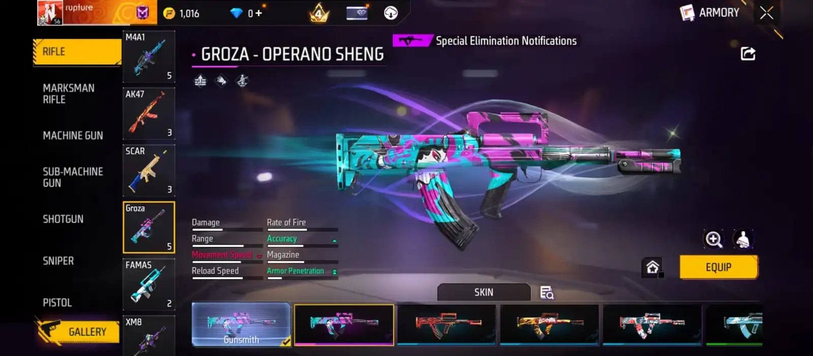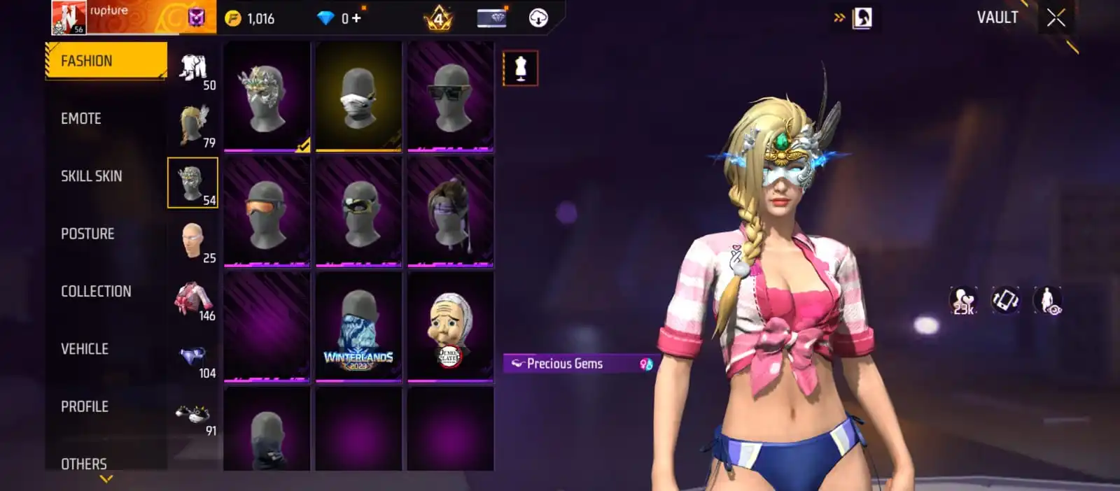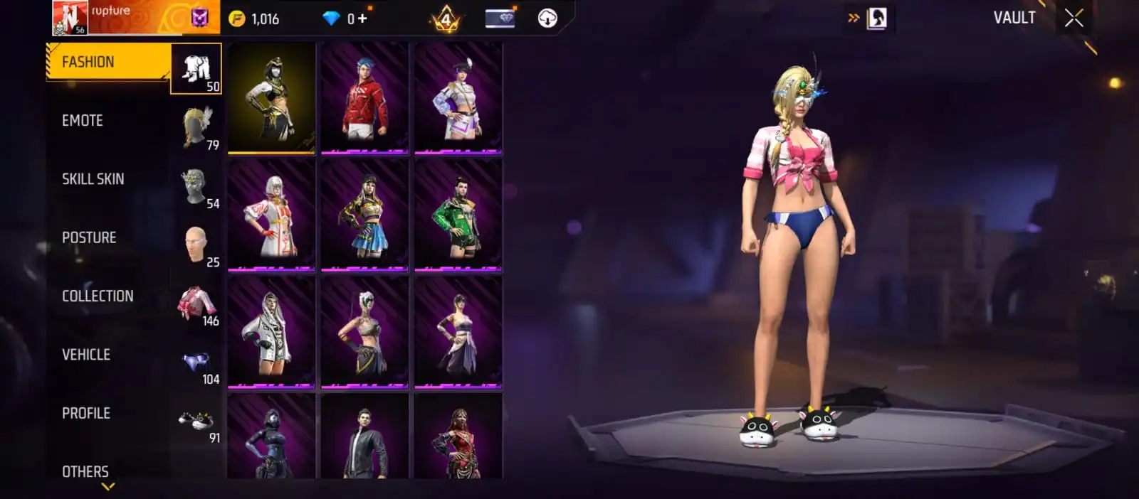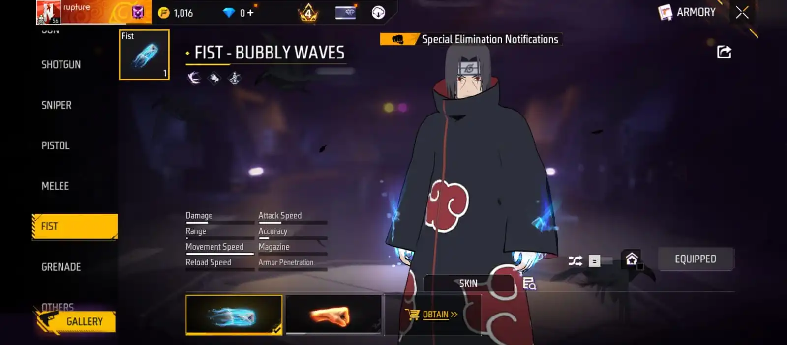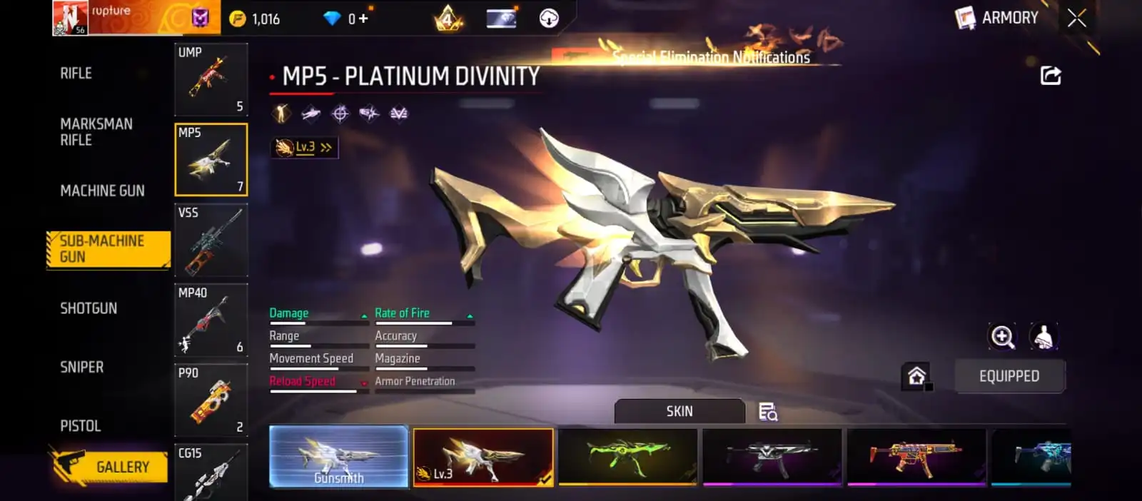 V37|LVL56|146COSTUME(7MYTHIC)|163WEAPON(2EVO+33MYTHIC)|PLATINUMDIVINITY-MP5LVL3|MAJESTICPROWLER-WOODPECKERLVL2|BUBBLYWAVES-FIST