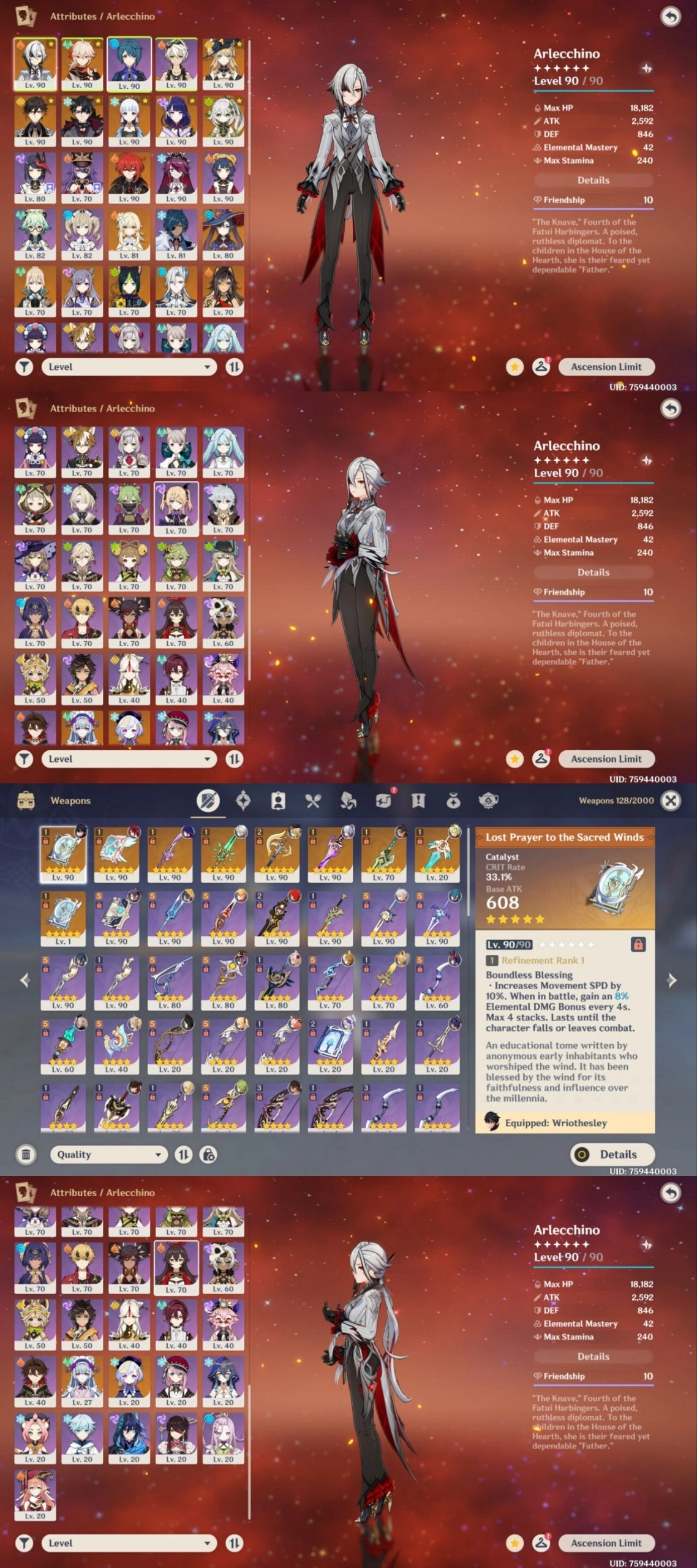 All Platform 🎮 EU 🇪🇺 AR60 🛍️ 61 Character 18 5'Star 🌟 9 Weapon 5'Star 💎 Arlecchino 💯 Neuvillette 🧩 Raiden Shogun 🏆 Navia 💯 Zhogli 🧿 Code1265
