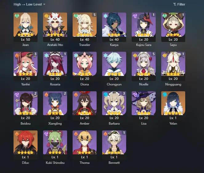 AR38 / NA {5X 5 STAR LEGENDS} Itto / Jean / Yelan / Diluc / Traveler // {0-WEAPON}- FULL ACCESS Lai02