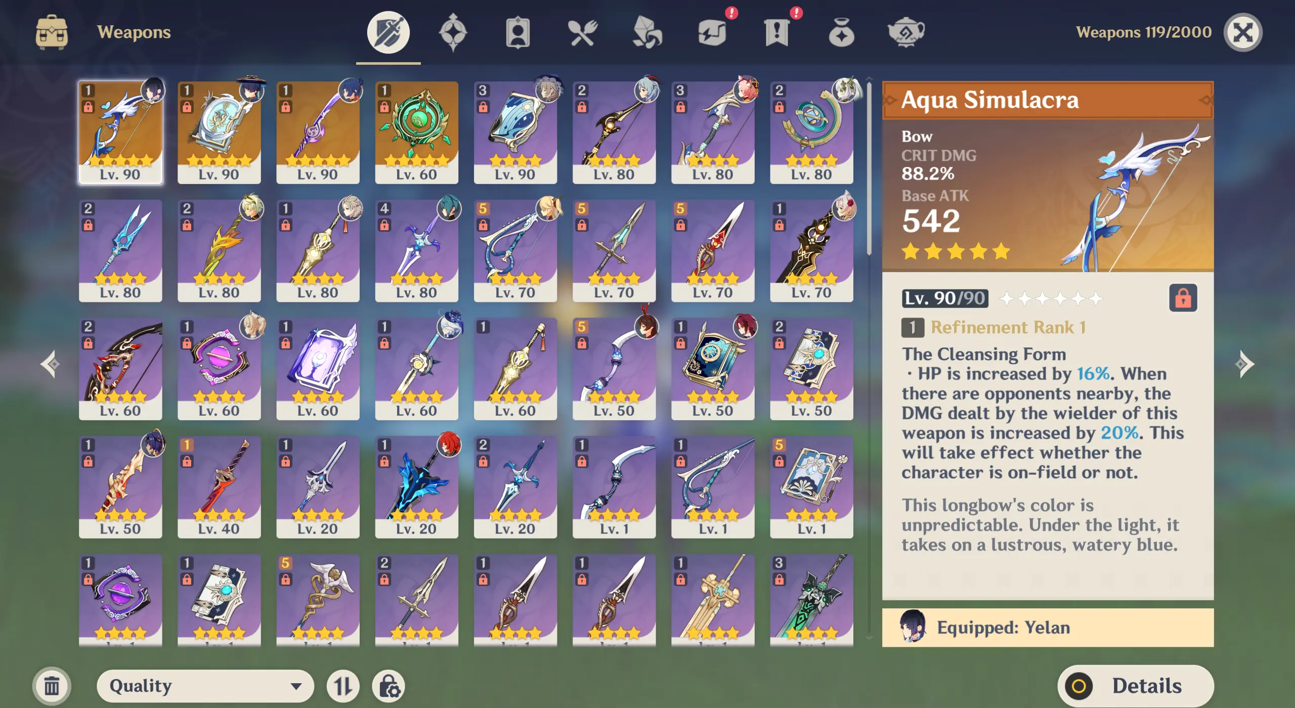 ASIA AR56 | 5 stars*15 FURINA | NAHIDA | YELAN | ZHONGLI | WANDERER | GANYU | ALBEDO | TIGHNARI | DILUC | JEAN | QIQI | AQUA SIMULACRA | ENGULFING LIGHTNING | JADEFALL'S SPLENDOR | LOST PRAYER TO THE SACRED WINDS + lots of 4* characters and weapons