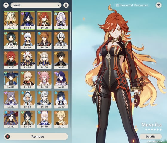 Chasca Citlali Nahida Furina raiden neuvillette hutao Yelan Lauma mavuika ar58