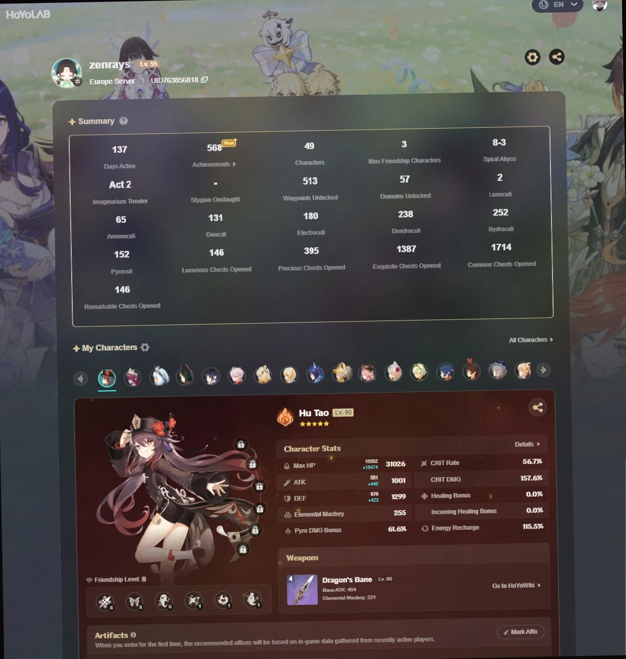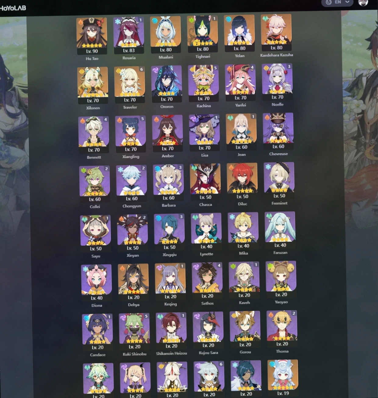 [EU HANDLEVELED] AR 55 | 17 LEGS | Xilonen+Mualani+Chasca+Yelan+Kazuha+Hu Tao+Sigewinne+Jean C1+Keqing C1+Tighnari C1+MORE! | FULL ACCESS + EMAIL #CODE-160667