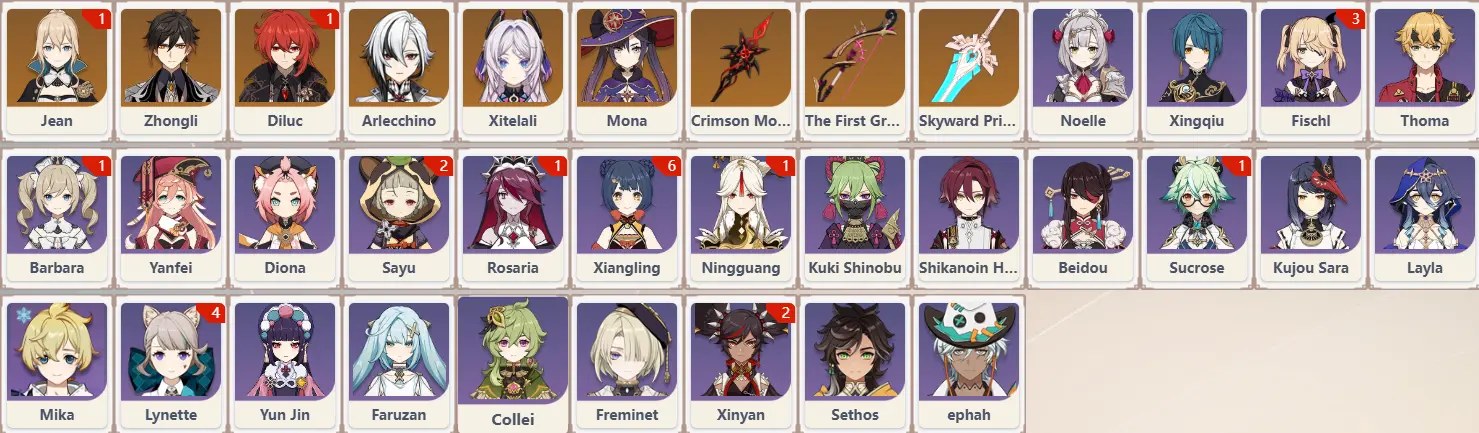 ![[NA]AR55|FiveStars*11||Zhongli|Kaedehara Kazuha+arms|Yelan+arms|Navelette| Fernina|Hu Tao+arms| Wanderer|Keqing*1|Dehya|Mona |Tighnari|See description and pictures for details|Fast shipping](https://cdn.gameboost.com/static/servers/sm/AM.webp)