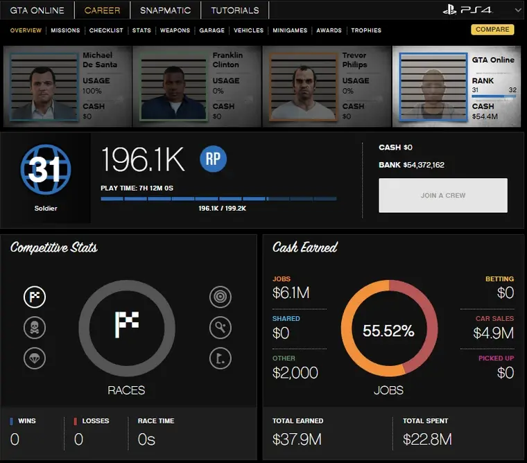🏦 [PS4] GTA 5 With 460M (54M Cash + 132 Cars) | RP Rank 30 | Full Access | Instant Delivery | Trusted Seller | OB45