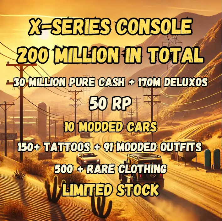 Xbox Series Enhanced Modded Outfits Account | Male Character | Max Stats & 150+ Rare Tattoos | 91 Modded Outfits + 200M (30M Pure Cash + 170M Deluxos) | RP 50 | 10 Modded Cars | #GTAXSCC186