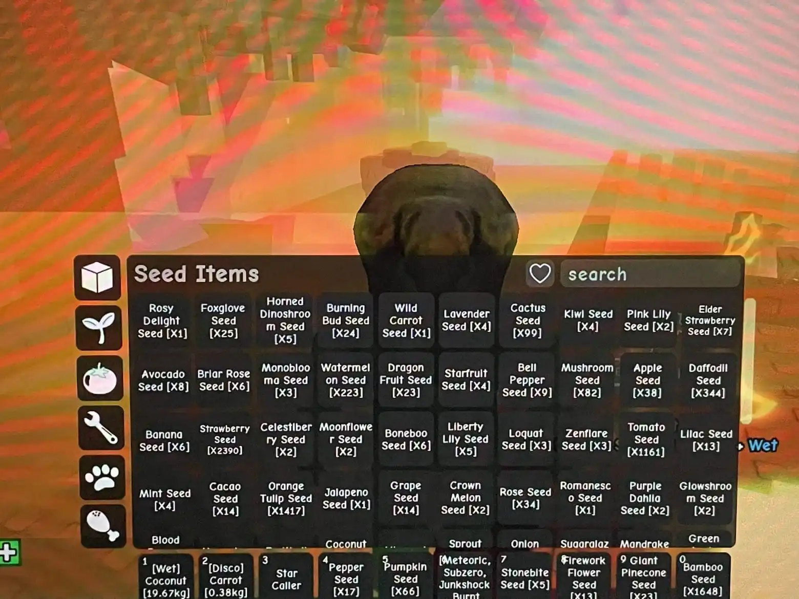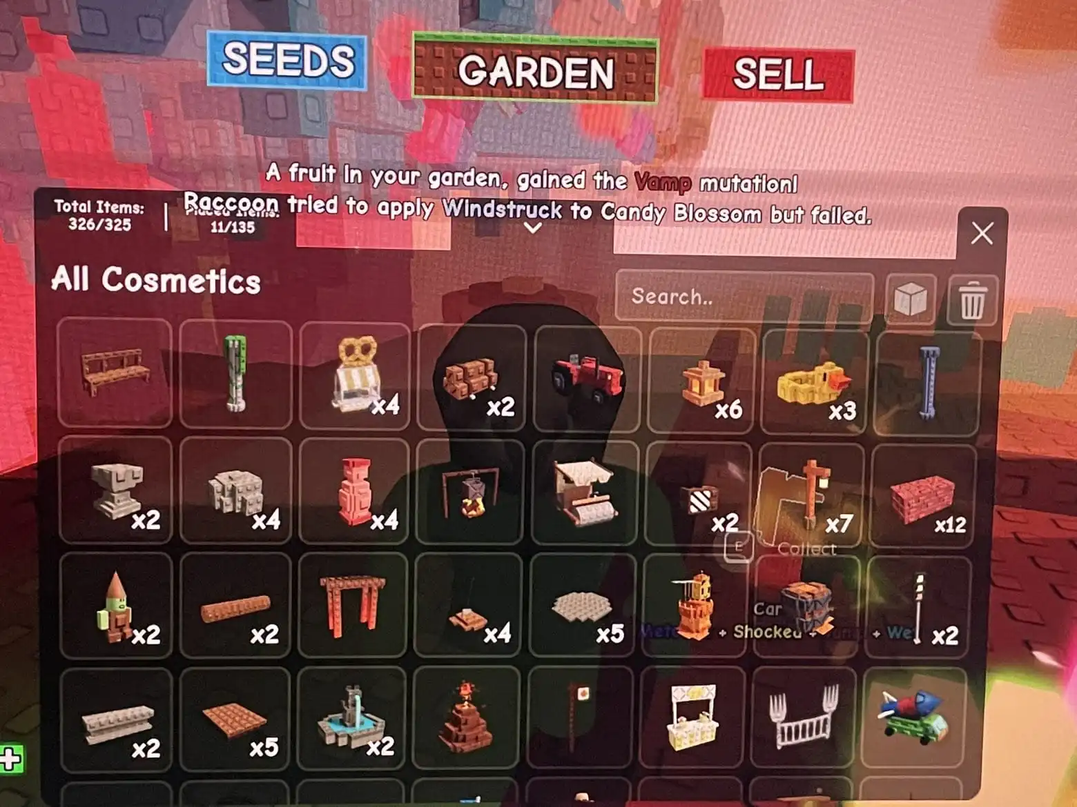 🌸 327x Candy Blossom Trees | 💀 4x Bone Blossom Trees | 🥞 1x Pancake | 🦝 1x Raccoon | 🥭 157x Mango Trees | 🌱 Many Seeds | 🐾 Pets | 💄 Cosmetics